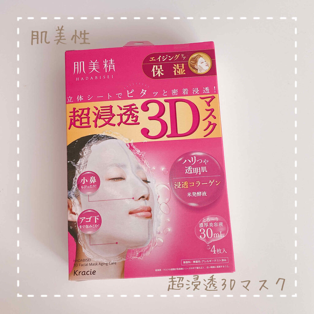 顔の凹凸にピッタリフィット!!立体形状マスク✨✨肌美精 超浸透3Dマスクエイジングケアとろみのある濃厚美容液がたっぷり30ml浸透した保湿効果の高いシートマスクです!かなりしっとりもちもちのお肌になれました♪翌朝まで潤いが続くのを実感🥹🥹あご...