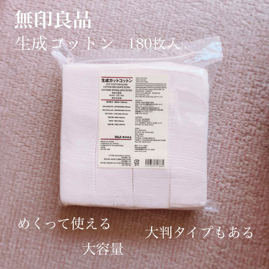 無印良品生成カットコットン180枚入り 299円無漂白のコットンです🌱以前も使ったことがあり、久しぶりにまた購入しました〜少し高くなってたけどそれでも大容量で嬉しい😊柔らかくて大きさも厚みもちょうど良くて使いやすいです♪主にポンイトメイクを落...