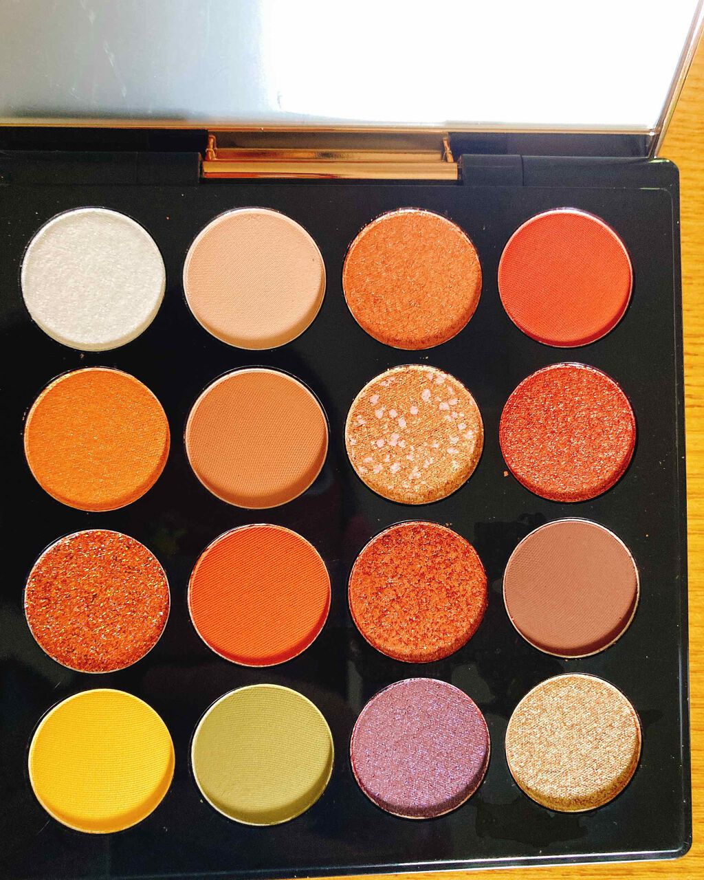 ゴールド系のラメがしっかり入ってるのでぱっと見は結構ギラギラかも?と思ったのですが、ラメが細かいので思いのほか肌馴染みがよかったです。 塗りすぎると流石にギラギラするのでベースとして軽く仕込んでおいて、オレンジや黄みブラウン系のアイシャドウと合わせると可愛いです! イエベで黄みを吸う肌質なので肌馴染みがいいのですが、逆に言うと見た目ほど黄色!って発色にはならなかったです。