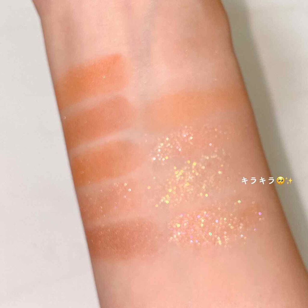 🖇#セザンヌ#トーンアップアイシャドウ新色の08ハニーブラウンナチュラルなオレンジブラウン🍯手に乗せると結構発色するけど目元ではあまり発色せず、ラメとパールがメイン✨真ん中のカラーにピンクのラメも入っていてキラキラ感が可愛すぎる…!Aのカラー...