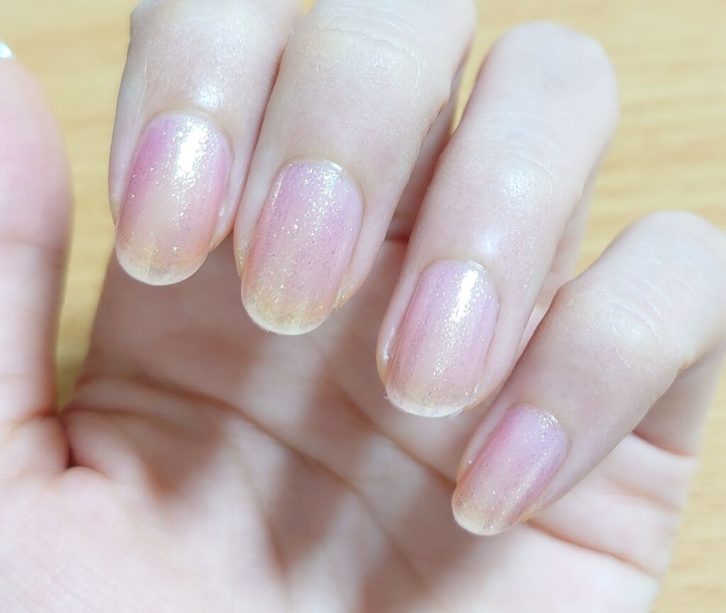 キャンメイクカラフルネイルズN39プティバレリーナ2度塗り+トップコートプティバレリーナ先月末に発売された定番色くすみピンクに上品に煌めくピンクパールが入っています1度塗りだと若干ムラになりますが、遠目で見れば気にならないですちふれの143に...