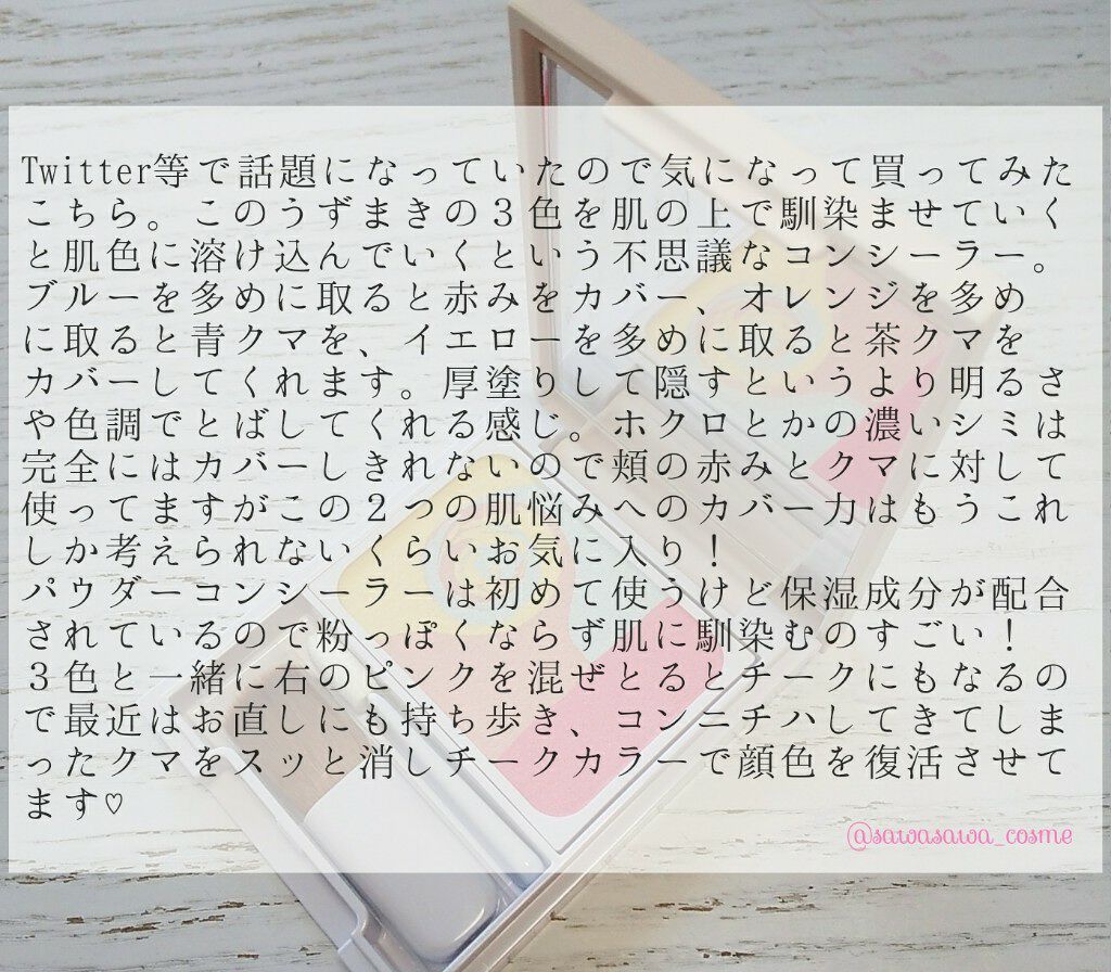 | コンシーラーランキング第49位 | 粉タイプなので化粧直しの時もとっても簡単! 持ち歩きやすい大きさも👌 | 詳細を見る | |