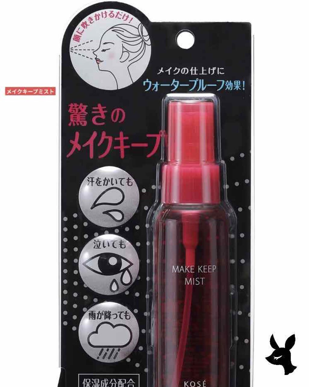 - メイクの仕上げにウォータープルーフ効果 ! 顔に吹きかけるだけ ! 汗をかいても、泣いても、雨が降っても。 ■つけたての美しいメイクを長時間キープ! メイクコート成分配合。しっかりとメイクを固定しながら、顔の動きに合わせて伸縮するため、時間がたってもメイクがヨレることなく、美しい仕上がりをキープします。 ■汗・皮脂プルーフ成分配合 汗や水、皮脂まではじくため、メイクによるテカリやにじみをしっかりと抑えます。 ■乾燥を防ぎ、うるおいもキープ 保湿成分(3種のヒアルロン酸、コラーゲン、BG)配合。うるおいを与え、乾燥から肌をガード。みずみずしいうるおいが続きます。 ■フレッシュフローラルの香り ■無着色 ※メイクコート成分は (アクリレーツ/アクリル酸ステアリル/メタクリル酸ジメチコン) コポリマー、汗、皮脂プルーフ成分はトリメチルシロキシケイ酸、3種のヒアルロン酸はヒアルロン酸Na、加水分解ヒアルロン酸、アセチルヒアルロン酸Naです。