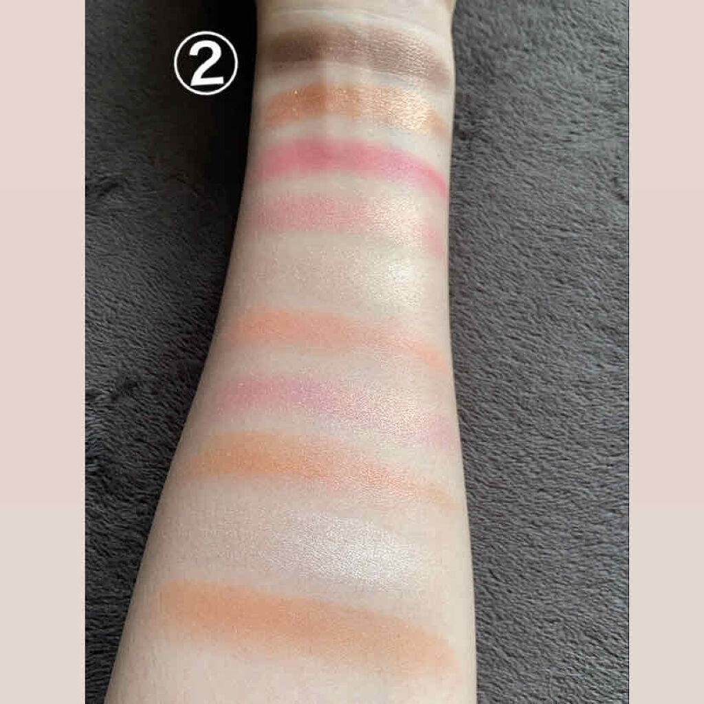 - 肌なじみの良い、鮮やかな発色で目元を華やかに彩る捨て色なしの10色アイシャドウパレット 異なる3種のテクスチャーを自由に組み合わせて、グラデーションも思いのままに。 NEW 2023.4 ・肌トーンにあう配色を詰め込んだトレンドカラー 肌トーンに合わせて、自分に似合うトレンドカラーが楽しめる♡ パーソナルカラー×トレンドカラーの掛け合わせパレットで、デイリーメイクもスペシャルメイクも気分にあわせてなりたい自分に! ・むにゅっとジェル質感ラメで高密着、煌めく目元 パレットの中でもポイントとなる大きめ粒子のラメは、ジェルのような新質感で落ちにくく肌にぴったりと密着します。キラキラとした目元をキープします。 ・使うカラーは大きめに!リアル捨て色なしパレット ベースやラメのよく使うカラーと締め色や濃い色等の減りが少ないカラーを異なるサイズで詰め込んだ、リアル捨て色なしパレット! <使用方法> 付属のデュアルシャドウブラシでベースカラーをまぶた全体に塗り広げます。細いブラシでグラデーションや目尻、アイライン、涙袋などのポイントカラーをのせて仕上げます。