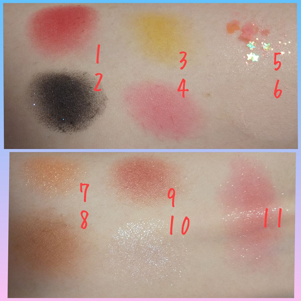 パッケージの上蓋がウォーターシールみたいにスパンコールが揺れ動くオシャレな作りで、オシャレなデザインなのが魅力。 ラメがめちゃくちゃかわいいしマットカラーの発色がえげつないのよ。 落ち着いた色合いのマットカラーも入ってるから意外と普段メイクにも使えちゃうというね。