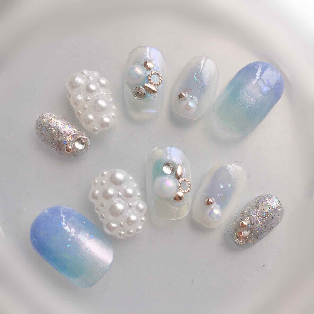 えー!めっちゃかわいいです!😍 涼しげでこの夏も乗り越えられますね💪🏻🔥 パールのモリモリ感も好きです💖 器用で羨ましい🌟参考にします!