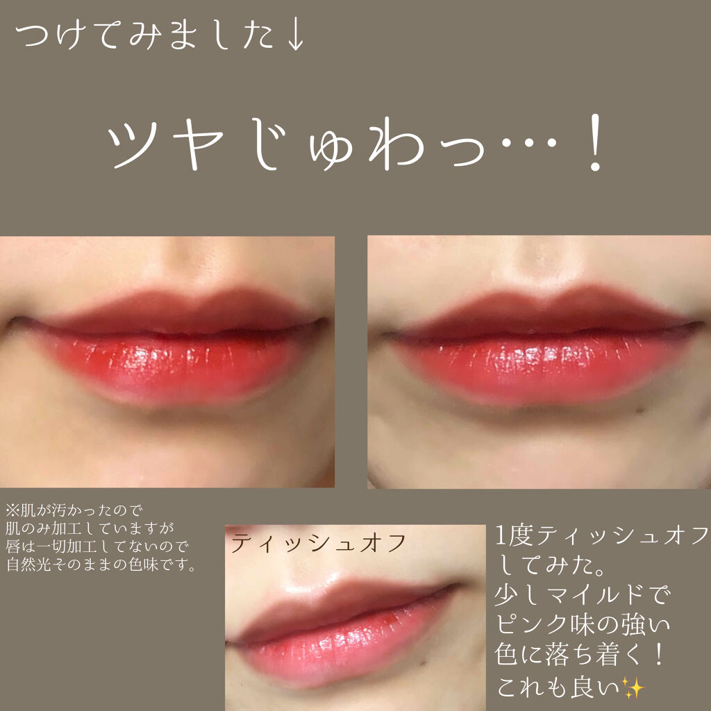 | 質感としてはつけたては意外とツヤっぽく、時間が経つとマットになっていきます。保湿力も◎ | 詳細を見る |