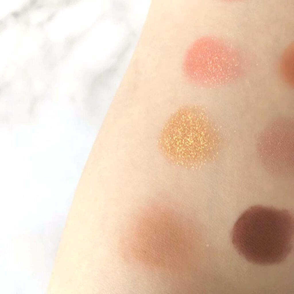 まず色味が本当にタイプ!🤍 白すぎないし、ピンクすぎないし、お仕事でもデートでもどんな場面にもぴったり☺️ ラメ感もすごく綺麗で、控えめなんだけどちゃんと存在感がある✨✨ ナチュラルに盛れるカラーが揃ったアイシャドウパレットってそんなにないから、プチプラでゲットできて嬉しいなぁ〜! 締め色は発色がよくてガッて付いちゃうので 少量ずつ付けるのがポイント!