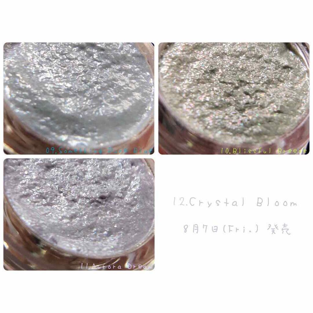 10はブルーパールとピンクブラウンの組み合わせ。これはどちらの色も淡い感じで締め色が必要な方には1つで仕上げるのは難しいかなという感じ。 偏光ラメはとにかくキラキラとして可愛いなと感じますがまぶたの上でギラつくことは無いので使いやすさは変わらずです。 個人的には単体で使うのは難しいので他のアイシャドウと合わせて使って目頭側の明るめの色として使いたい時や少し明るさを足したい時に使っています。