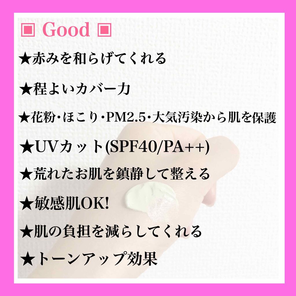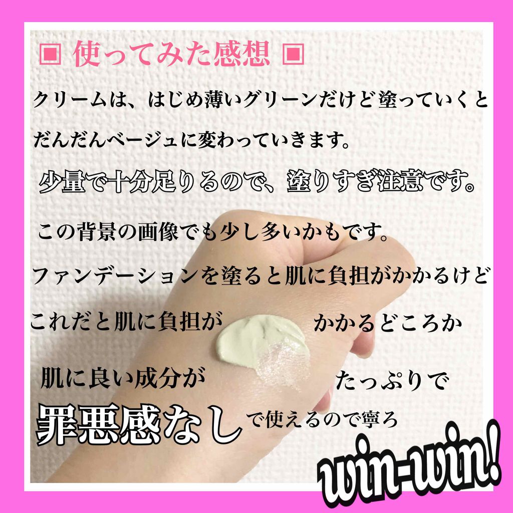 - 赤みをきちんとカバーするスキンケア兼用下地。緑色のクリームが肌でベージュ色に変化し、ニキビ跡やくすみをカバーします。