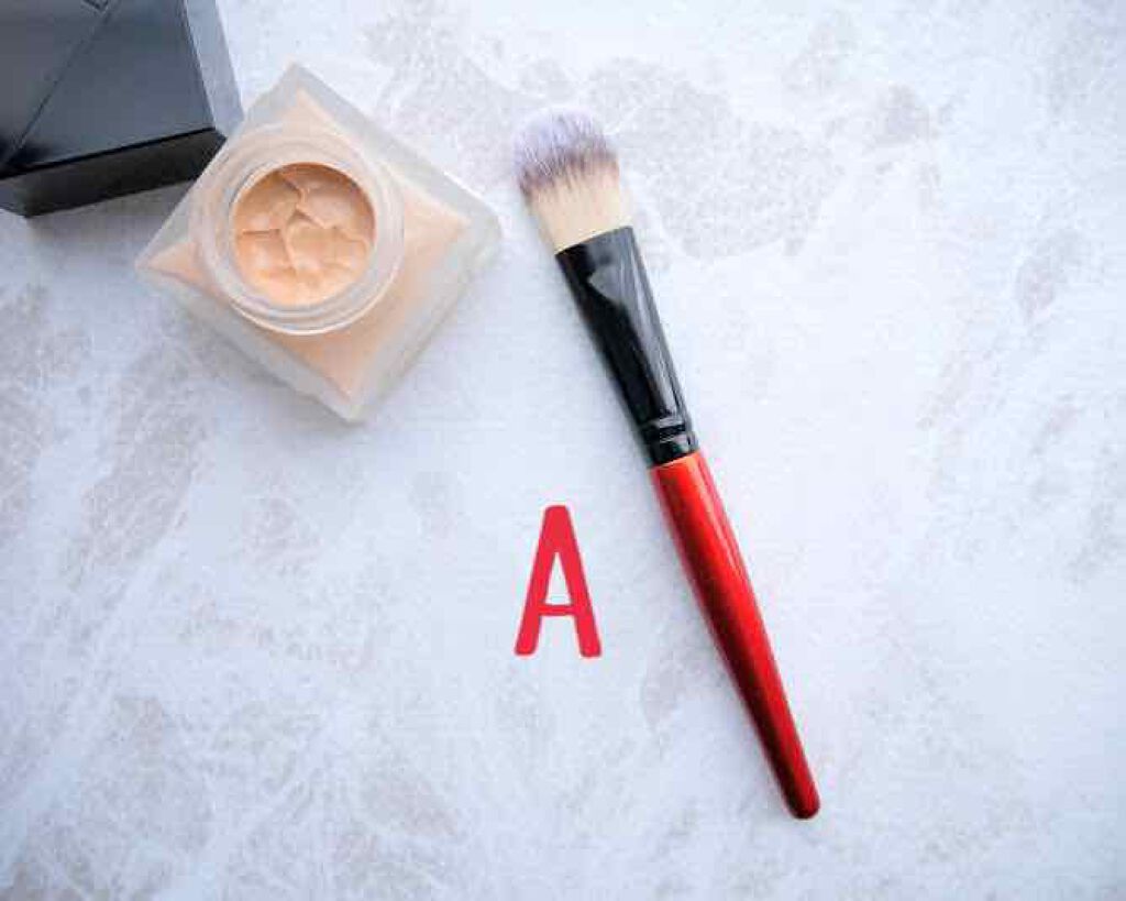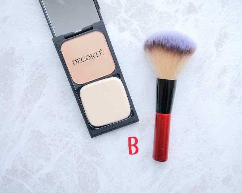 ①額の丸みを出すように眉間から逆三角形に②鼻筋鼻の下の線まで、鼻先は丸くしっかり③唇の直ぐ上、顎下あたりに丸く。④目尻下の頬に立体感。⑤眉下鼻筋辺りに小さな三角状に①〜⑤は Aのブラシでちょっとしっかりめに入れて、最後に Bのハケでお顔全体に...