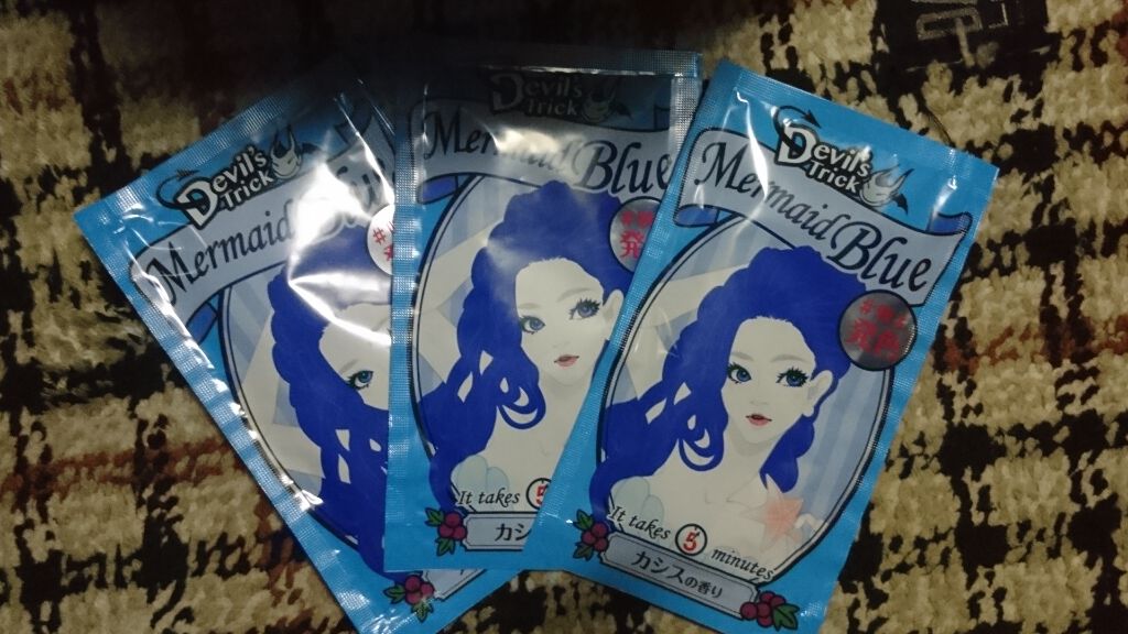 【使った商品】マカロンパレットブルーブラック【用意する物】ケープ、使い捨ての手袋、粗めのクシ、汚れてもいいタオル【手順】1.とかした髪に手袋をした手で少しづつ髪に塗布していきます。2.全体的にいくようにしたら髪に揉み込むようにします。3.その...