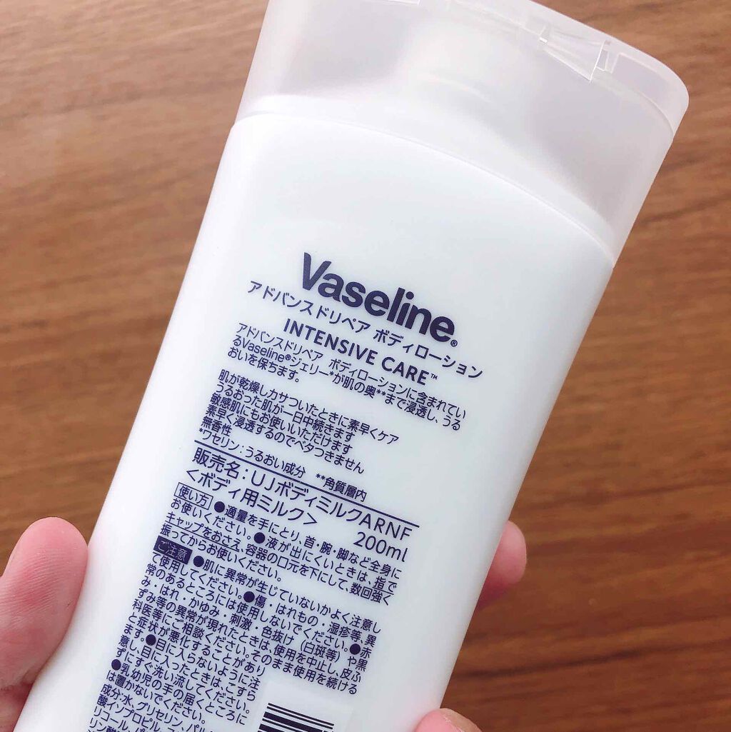 - うるおいたっぷりなのにベタつかない使い心地で、普通肌から乾燥肌、敏感肌の方の肌のうるおいを守ります。 Vaseline®ジェリー*配合 140年間守り続けてきたうるおい成分が肌の奥(角質層)まで浸透。 うるおった肌が一日中続きます。敏感肌の方にもお使いいただけます。 *ワセリン:うるおい成分 用途にあわせた2つのサイズ 200ml : 2014年の発売以来、大好評 400ml : お得な大容量サイズ。ポンプタイプで使いやすい