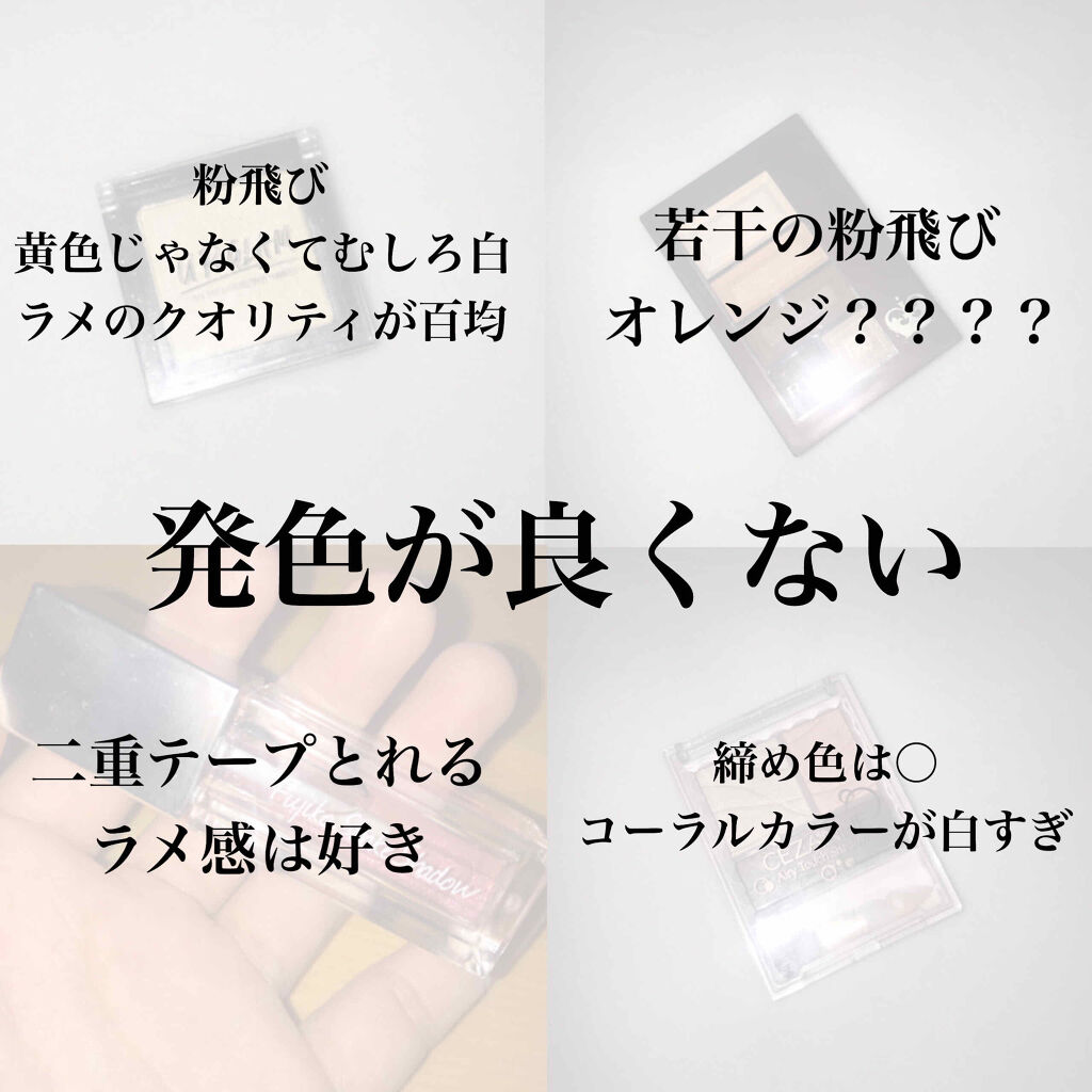 | 単色アイシャドウランキング第115位 | 粉飛び・ラメ飛びなし、使いやすいカラー。かなり実用性のあるカラーばかり! | 詳細を見る | |