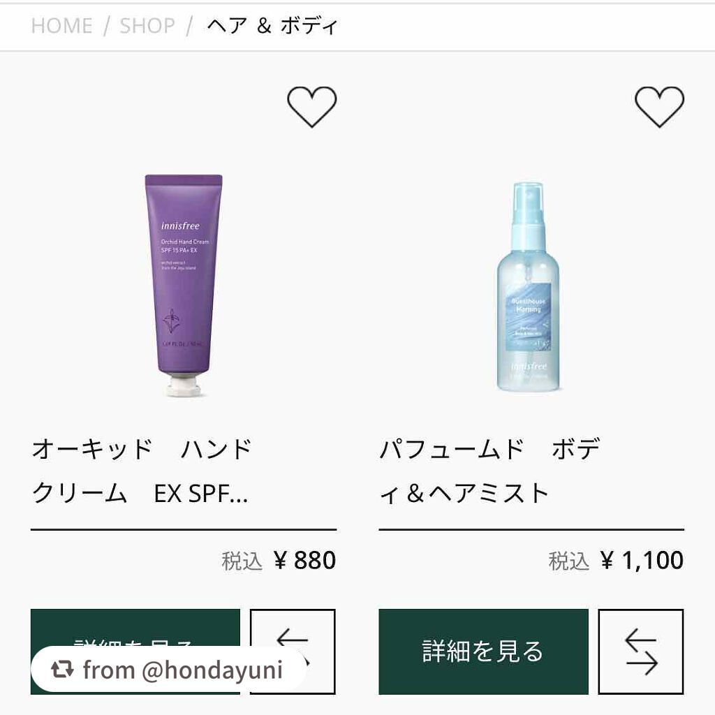 商品詳細情報innisfree パフュームド ボディ&ヘアミスト