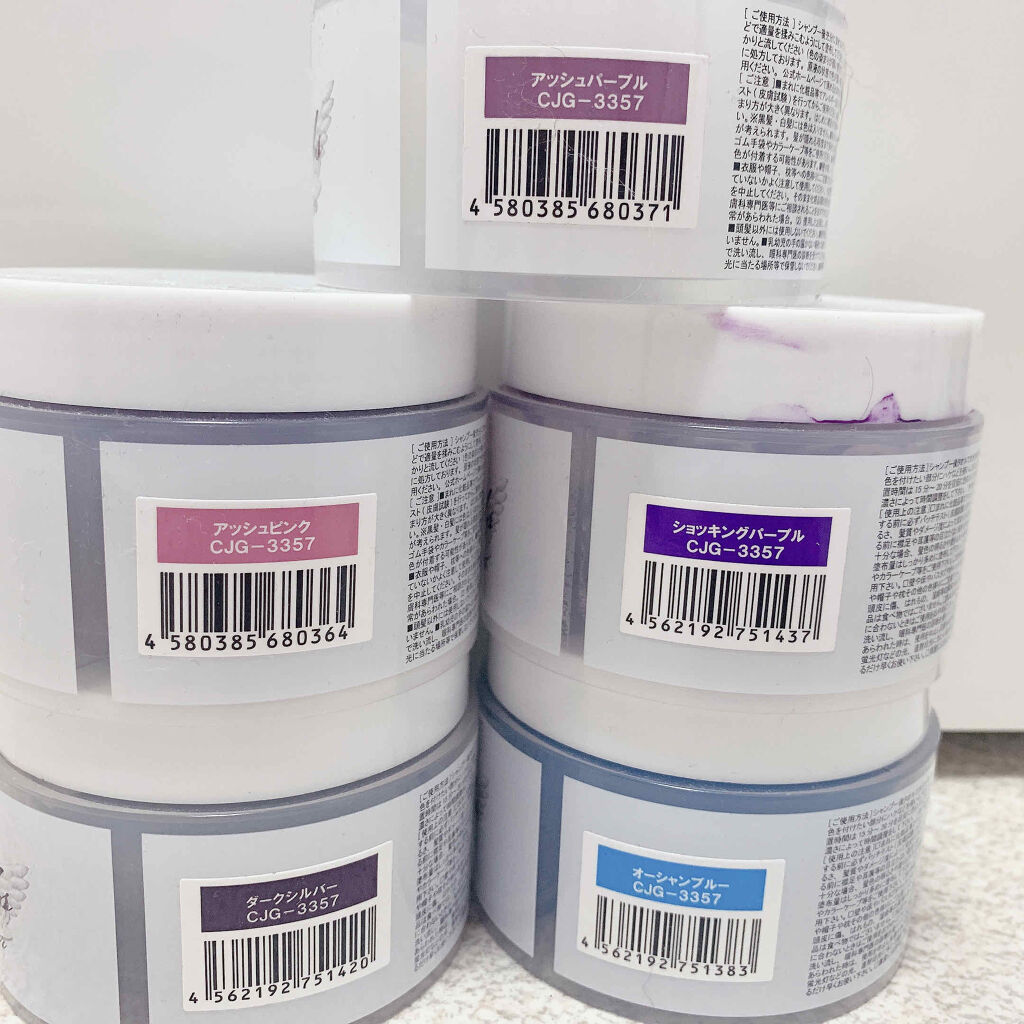 - <マンゴーオレンジ> 水、ステアリルアルコール、グリセリン、水添ナタネ油アルコール、ヒマシ油、ジメチコン、セタノール、脂肪酸(C10-30)(コレステリル/ラノステリル)、ラノリン脂肪酸オクチルドデシル、テオブロマグランディフロラム種子脂、グリコシルトレハロース、加水分解コムギタンパク、加水分解コムギデンプン、加水分解水添デンプン、グリチルレチン酸ステアリル、ステアルトリモニウムクロリド、ベヘントリモニウムクロリド、ジココジモニウムクロリド、アモジメチコン、ポリクオタニウム-10、イソプロパノール、オレス-50、セテス-20、エタノールアミン、リン酸、パルミチン酸アスコルビル、レシチン、トコフェロール、ソルビン酸K、エタノール、フェノキシエタノール、メチルパラベン、プロピルパラベン、ブチルパラベン、イソブチルパラベン、エチルパラベン、香料、(+/-)HC赤3、HC青2、HC黄2、HC黄5、塩基性赤2、塩基性赤46、塩基性赤76、塩基性青3、塩基性青99、塩基性紫1、塩基性紫2、塩基性紫14、塩基性黄57、塩基性茶16、赤227、青205、紫401 <アッシュブルー> 水、ステアリルアルコール、グリセリン、水添ナタネ油アルコール、ヒマシ油、ジメチコン、セタノール、脂肪酸(C10-30)(コレステリル/ラノステリル)、ラノリン脂肪酸オクチルドデシル、テオブロマグランディフロラム種子脂、グリコシルトレハロース、加水分解コムギタンパク、加水分解コムギデンプン、加水分解水添デンプン、グリチルレチン酸ステアリル、ステアルトリモニウムクロリド、ベヘントリモニウムクロリド、ジココジモニウムクロリド、アモジメチコン、ポリクオタニウム-10、イソプロパノール、オレス-50、セテス-20、エタノールアミン、リン酸、パルミチン酸アスコルビル、レシチン、トコフェロール、ソルビン酸K、エタノール、フェノキシエタノール、メチルパラベン、プロピルパラベン、ブチルパラベン、イソブチルパラベン、エチルパラベン、香料、(+/-)HC赤3、HC青2、HC黄2、HC黄5、塩基性赤2、塩基性赤46、塩基性赤76、塩基性青3、塩基性青99、塩基性紫1、塩基性紫2、塩基性紫14、塩基性黄57、塩基性茶16、赤227、青205、紫401 <キャンディピンク> 水、ステアリルアルコール、グリセリン、水添ナタネ油アルコール、ヒマシ油、セタノール、ジメチコン、脂肪酸(C10‐30)(コレステリル/ラノステリル)、ラノリン脂肪酸オクチルドデシル、テオブロマグランジフロルム種子脂、アルガニアスピノサ核油、グリコシルトレハロース、加水分解コラーゲン、加水分解水添デンプン、グリチルレチン酸ステアリル、ステアルトリモニウムクロリド、ベヘントリモニウムクロリド、ジココジモニウムクロリド、アモジメチコン、ポリクオタニウム‐10、BGオレス‐50、セテス‐20、エタノールアミン、リン酸、パルミチン酸アスコルビル、レシチン、トコフェロール、エタノール、イソプロパノール、メチルパラベン、プロピルパラベン、香料、(+/‐)HK赤3、HC青2、HC黄2、HC黄5、HC橙1、塩基性赤2、塩基性赤22、塩基性赤46、塩基性赤76、塩基性青3、塩基性青99、塩基性紫1、塩基性紫2、塩基性黄40、塩基性黄57、塩基性茶16、グンジョウ、赤227、青205、黄4、紫401 <ロイヤルブルー> 水、ステアリルアルコール、グリセリン、水添ナタネ油アルコール、ヒマシ油、セタノール、ジメチコン、脂肪酸(C10‐30)(コレステリル/ラノステリル)、ラノリン脂肪酸オクチルドデシル、テオブロマグランジフロルム種子脂、アルガニアスピノサ核油、グリコシルトレハロース、加水分解コラーゲン、加水分解水添デンプン、グリチルレチン酸ステアリル、ステアルトリモニウムクロリド、ベヘントリモニウムクロリド、ジココジモニウムクロリド、アモジメチコン、ポリクオタニウム‐10、BGオレス‐50、セテス‐20、エタノールアミン、リン酸、パルミチン酸アスコルビル、レシチン、トコフェロール、エタノール、イソプロパノール、メチルパラベン、プロピルパラベン、香料、(+/‐)HK赤3、HC青2、HC黄2、HC黄5、HC橙1、塩基性赤2、塩基性赤22、塩基性赤46、塩基性赤76、塩基性青3、塩基性青99、塩基性紫1、塩基性紫2、塩基性黄40、塩基性黄57、塩基性茶16、グンジョウ、赤227、青205、黄4、紫401 <ブルーバイオレット> 水、ステアリルアルコール、グリセリン、水添ナタネ油アルコール、ヒマシ油、セタノール、ジメチコン、脂肪酸(C10‐30)(コレステリル/ラノステリル)、ラノリン脂肪酸オクチルドデシル、テオブロマグランジフロルム種子脂、アルガニアスピノサ核油、グリコシルトレハロース、加水分解コラーゲン、加水分解水添デンプン、グリチルレチン酸ステアリル、ステアルトリモニウムクロリド、ベヘントリモニウムクロリド、ジココジモニウムクロリド、アモジメチコン、ポリクオタニウム‐10、BGオレス‐50、セテス‐20、エタノールアミン、リン酸、パルミチン酸アスコルビル、レシチン、トコフェロール、エタノール、イソプロパノール、メチルパラベン、プ