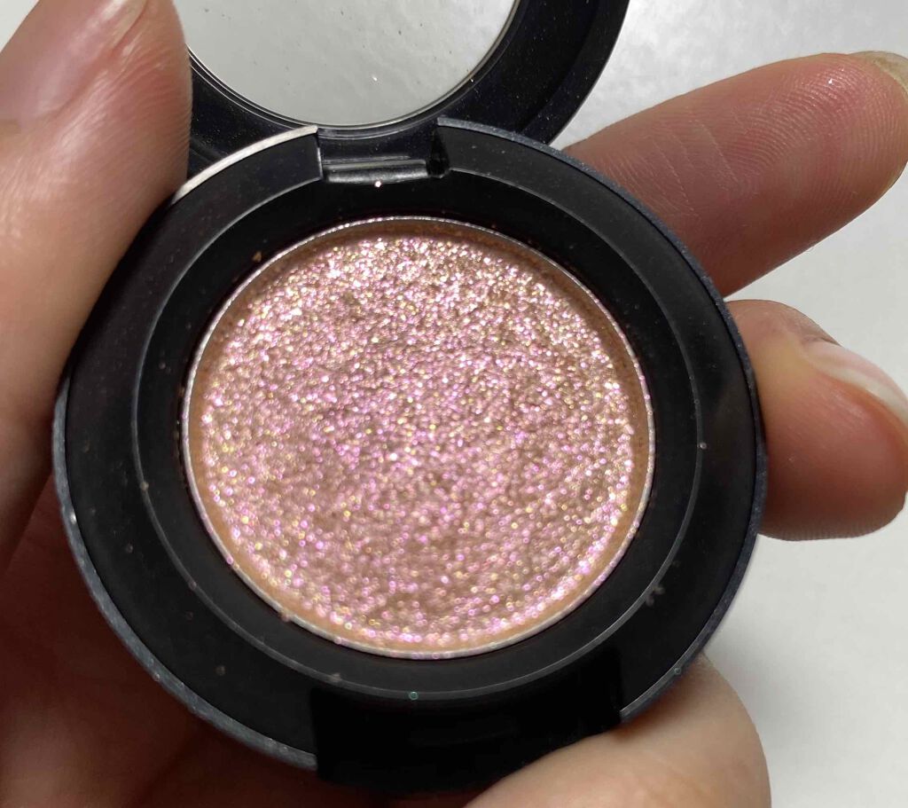 .MACダズルシャドウラストダンスピンクがきらめくピーチベージュ🍑💗リッチなピグメントがまぶたに密着🥺クリームとパウダーが密着したようなテクスチャーで、目元も一気にゴージャスに🪞✨ザクザクでピンクやオレンジゴールドの偏光ラメが可愛い🩷💜✨ピン...