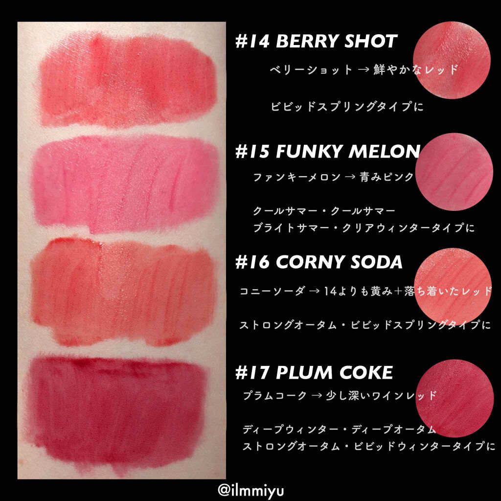 ▼#ロムアンドティント#全色スウォッチ💄【𝙏𝙬𝙞𝙩𝙩𝙚𝙧・𝙄𝙣𝙨𝙩𝙖𝙜𝙧𝙖𝙢→@ilmmiyu】他のロムアンドティントの全色スウォッチやパーソナルカラー分けはこのタグから🏷【#ロムアンドリップスウォッチ_ilmmiyu】【#r...