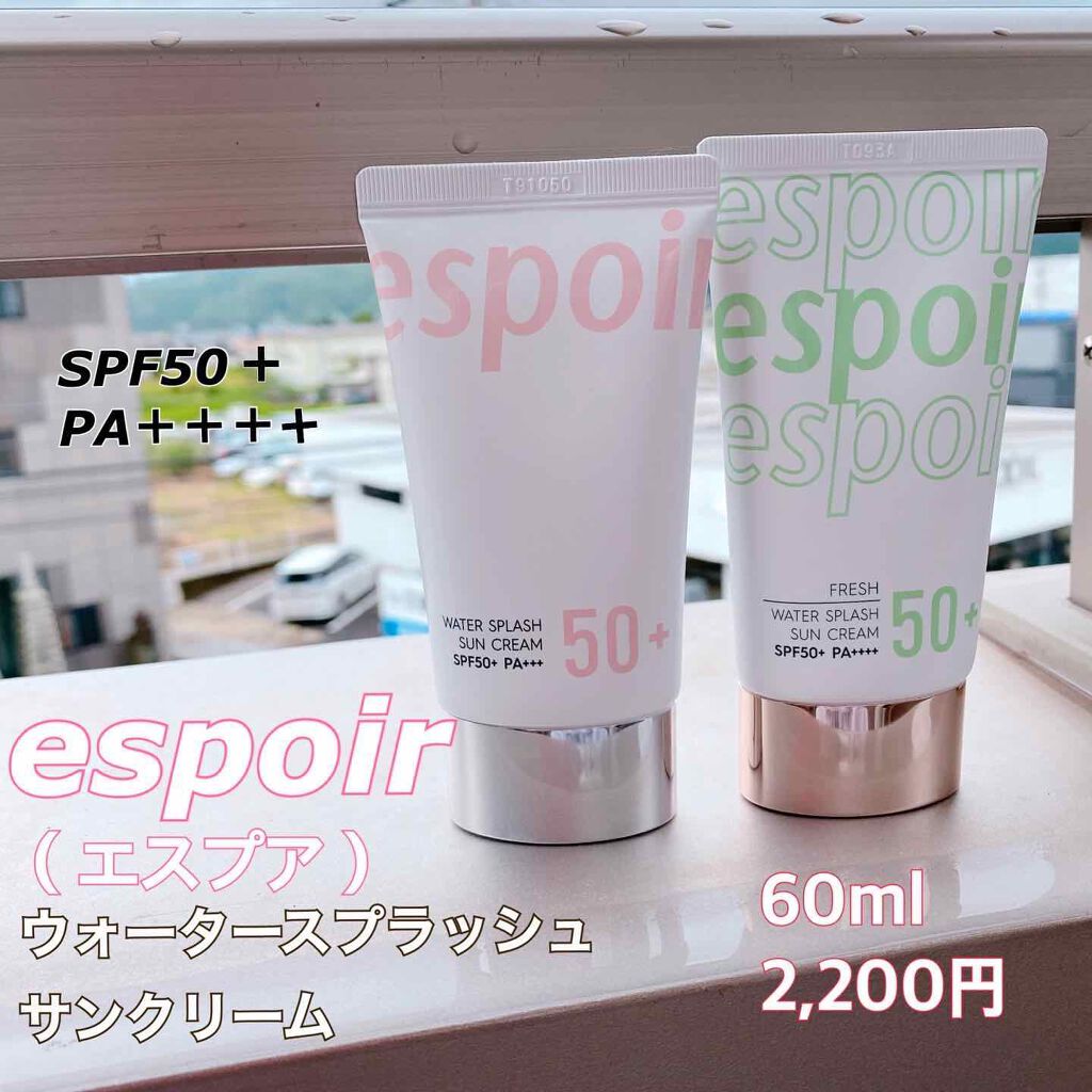 こんにちは!あーたんです!今回紹介するのはespoirのウォータースプラッシュサンクリームピンクです!ほんのりピンク色で肌に血色感をあたえてくれます👍伸びも良くて瑞々しく感じます!ただ、カバー力はないので下地としてはつかえないですね🥲香りも日...