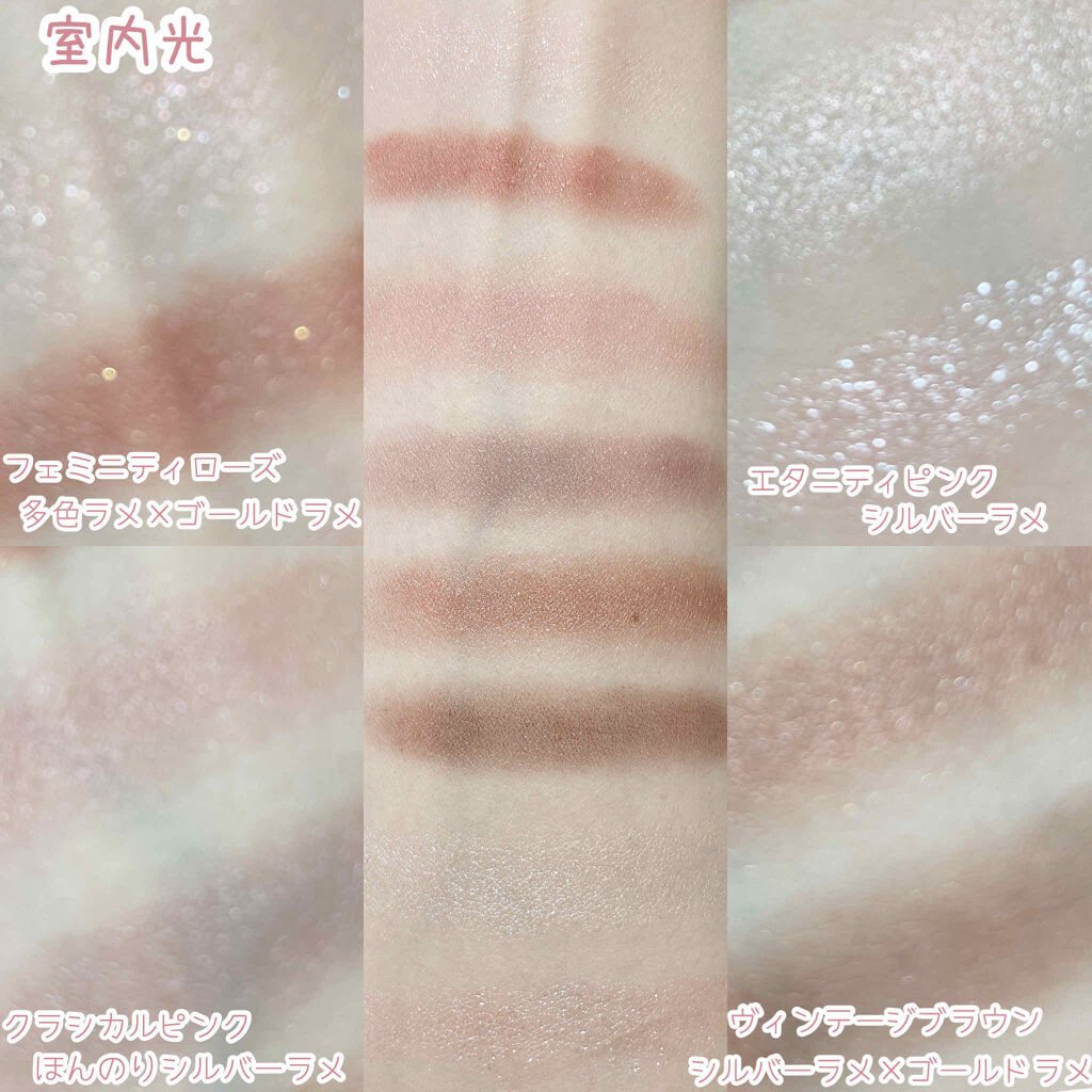 Diorディオールショウサンククルール983シャンゼリゼクリスチャン・ディオールが愛した通りシャンゼリゼ通りが夕陽に染まる情景からインスピレーションを得たアイシャドウ パレット左上ローズピンク シアーグリッターピンクパールホワイト偏光ラメ右上...