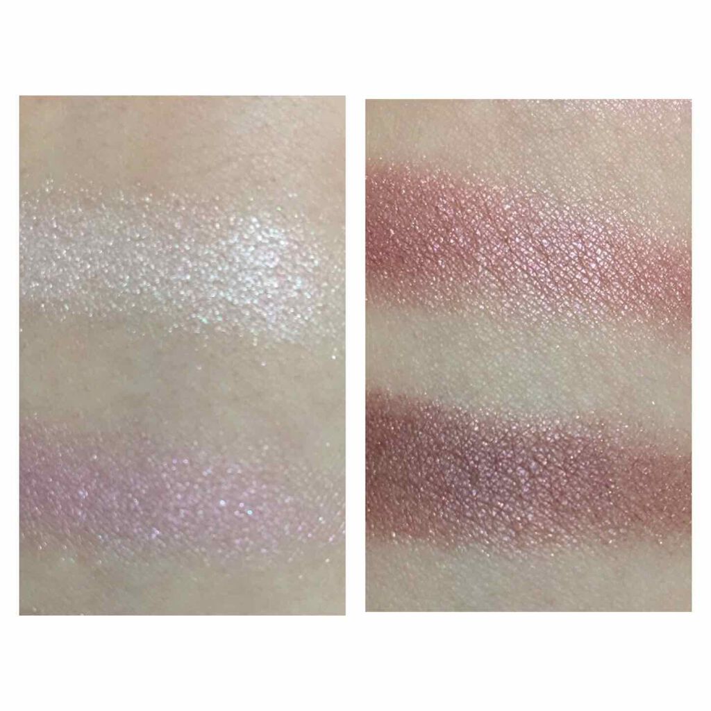 粒子の細かい、ふわっと軽い質感だけど、しっかり密着してくれます。 ぼかしやすく、カラー構成ももグラデーションしやすくなってるから、 ぼかすのが苦手な方には良さそう🎶 ほのかなパール、マットの組み合わせでナチュラルなグラデーションアイの出来上がり🥰