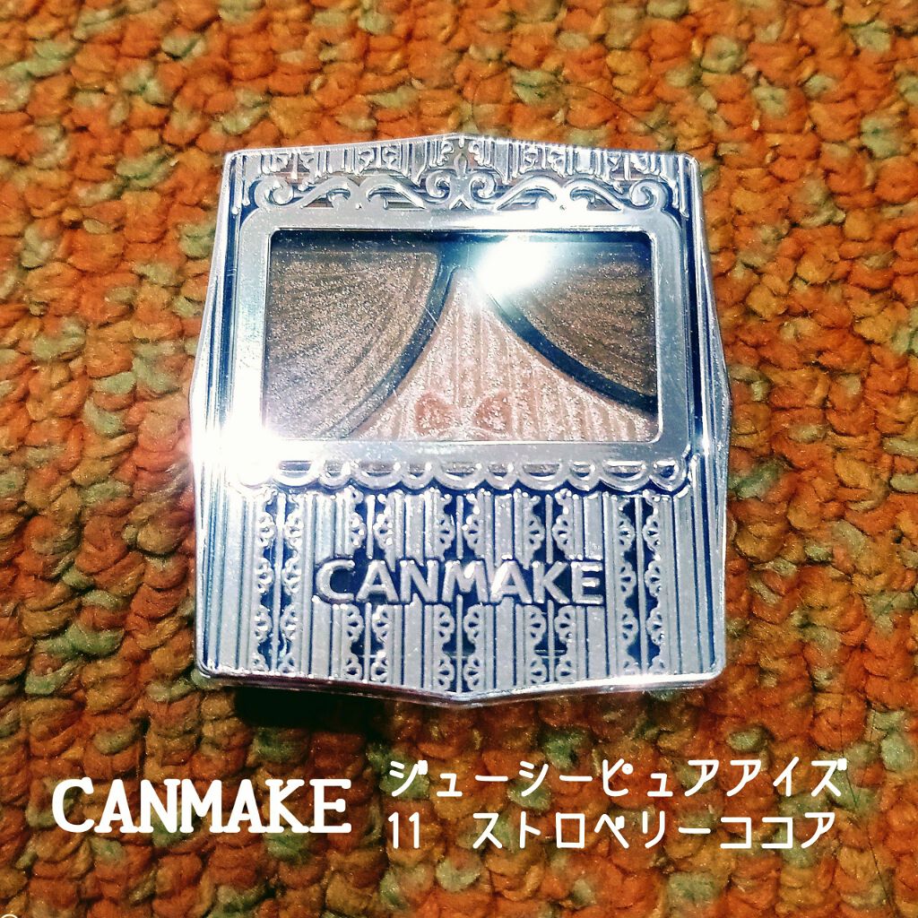 お仕事用によく使っているアイシャドウ#CANMAKEの#ジューシーピュアアイズです。11#ストロベリーココアです。お仕事中は左右のブラウンだけでメイクしてて、真ん中のキラキラは、仕事が終わったら職場のトイレでメイク直しついでにまぶたに重ねてま...