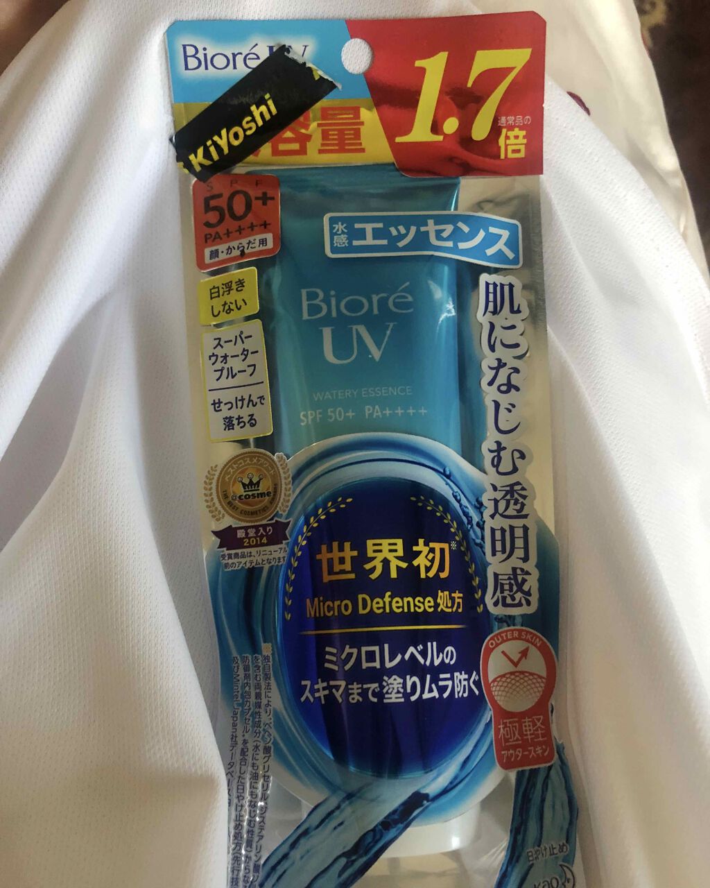 - 世界初*1Micro Defense 処方。ミクロレベルの隙間まで塗りムラ防ぐ。塗り直しても、重ねても感動的に軽い!肌になじむ透明感、水感エッセンス。 ぷるぷるのウォーターカプセル配合。乾燥を防ぐ。 ヒアルロン酸・ローヤルゼリーエキス・BG配合(保湿成分)。 ピタッと密着して白浮きしない、透明感ある仕上がり。 ◆SPF50+/PA++++ ◆スーパーウォータープルーフ(80分間の耐水試験で確認済み) ◆せっけんで落ちる ◆化粧下地にも使える ◆ホワイトミュゲのやさしい香り ◆着色料フリー ◆ニキビになりにくい処方(ノンコメドジェニックテスト済み*2) ◆アレルギーテスト済み*2 *1 独自製法により、ベヘン酸グリセリル、ジステアリン酸ソルビタンを含む両親媒性成分(水にも油にもなじむ性質)からなる“UV防御剤内包カプセル”を配合した日やけ止め処方(先行技術調査及びMintel Japan社データベース内2018年7月当社調べ) *2 すべての方にコメド(ニキビのもと)ができない、アレルギーが起こらないというわけではありません。