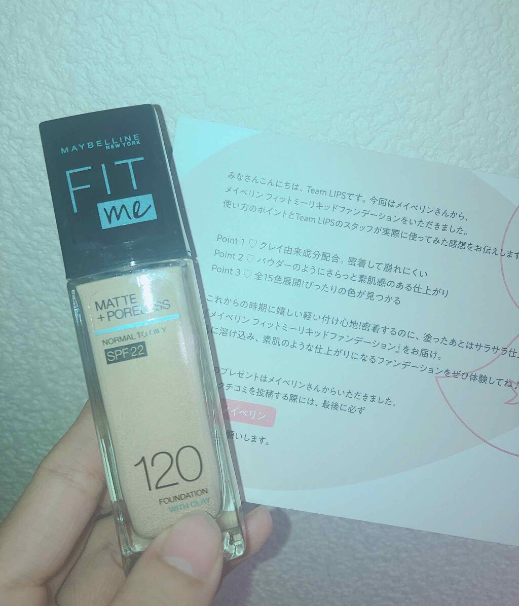 カラバリえぐ!!MAYBELLINENEWYORKフィットミーリキッドファンデーションR112、120ルミマットファンデ人気だけど、、、、フィットミーも負けてないのよ!!軽いつけ心地で肌にぴったり密着し、崩れにくいのがポイント!!毛穴やくすみ...