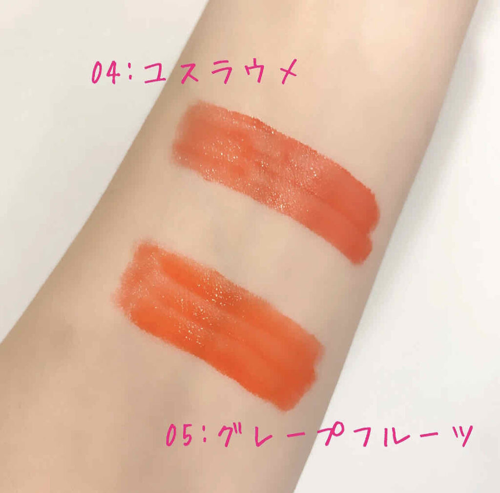 - まるで果実をかじったようなみずみずしいツヤをまとえるツヤ系ティント。 果実をモチーフにした明るいカラー展開で、思わず手を伸ばしたくなる色合いが勢ぞろい。