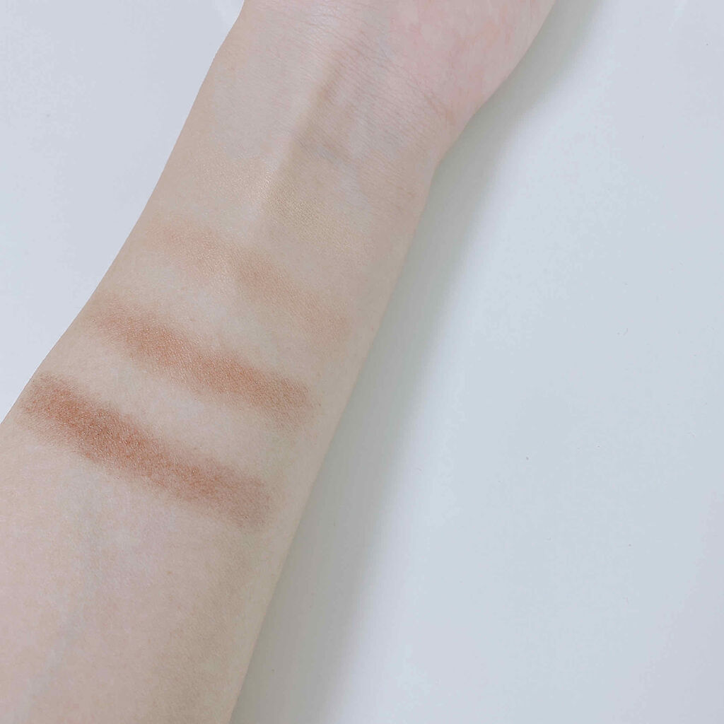初めてのスキニーリッチシャドウ🫶 可愛い! しっとりした粉質で、粉飛びしにくかったです。 上段はツヤで、下段はパールがキラキラしているかな。SR03はほんのりピンクニュアンスとのことですが、私の肌だとピンクよりオレンジっぽく発色しました。 発色は濃すぎず、薄すぎず丁度いい感じ。 グラデーションをつくるのが簡単でした♡