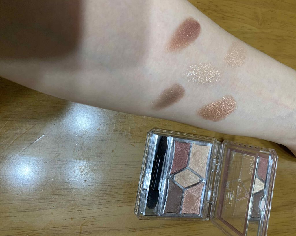 - ラメ・パールは控えめ、しっとり密着して高発色の5色アイシャドウ。1色は上からトッピングできるラメパウダー。ナチュラルスタイルと華やかスタイルを2パターン楽しめるカラーバリエーションです。