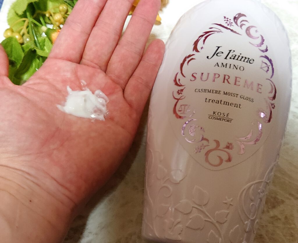 カラーリングによる痛みが気になっていたので使用するのが楽しみでした😊 チューブタイプの商品で蓋はワンタッチで開閉できるのが嬉しいです🎶 手に出してみると黄色みがかったこっくりとした固めのテクスチャです。 毛先を中心に揉みこむようにして馴染ませると髪の毛1本1本にしっかり密着してくれる感じで液垂れも気になりません。 少し置いた後洗い流すと髪の毛の手触りがスルンとなり、ヌルつきが残ることもありません✨ 乾かすとサラサラでしっかりまとまってくれる仕上がりで、少し重さもあるので根本にはあまり使用しないほうがいいんじゃないかな❓️と思いました。 キメが整うという意味が分かるくらい仕上がりが綺麗なのがとても良かったです😁 香りはフローラルリュクスの香りとありますが甘めのフローラルの香りで、香り残りも強いので好き嫌いは分かれそうだなと思います。