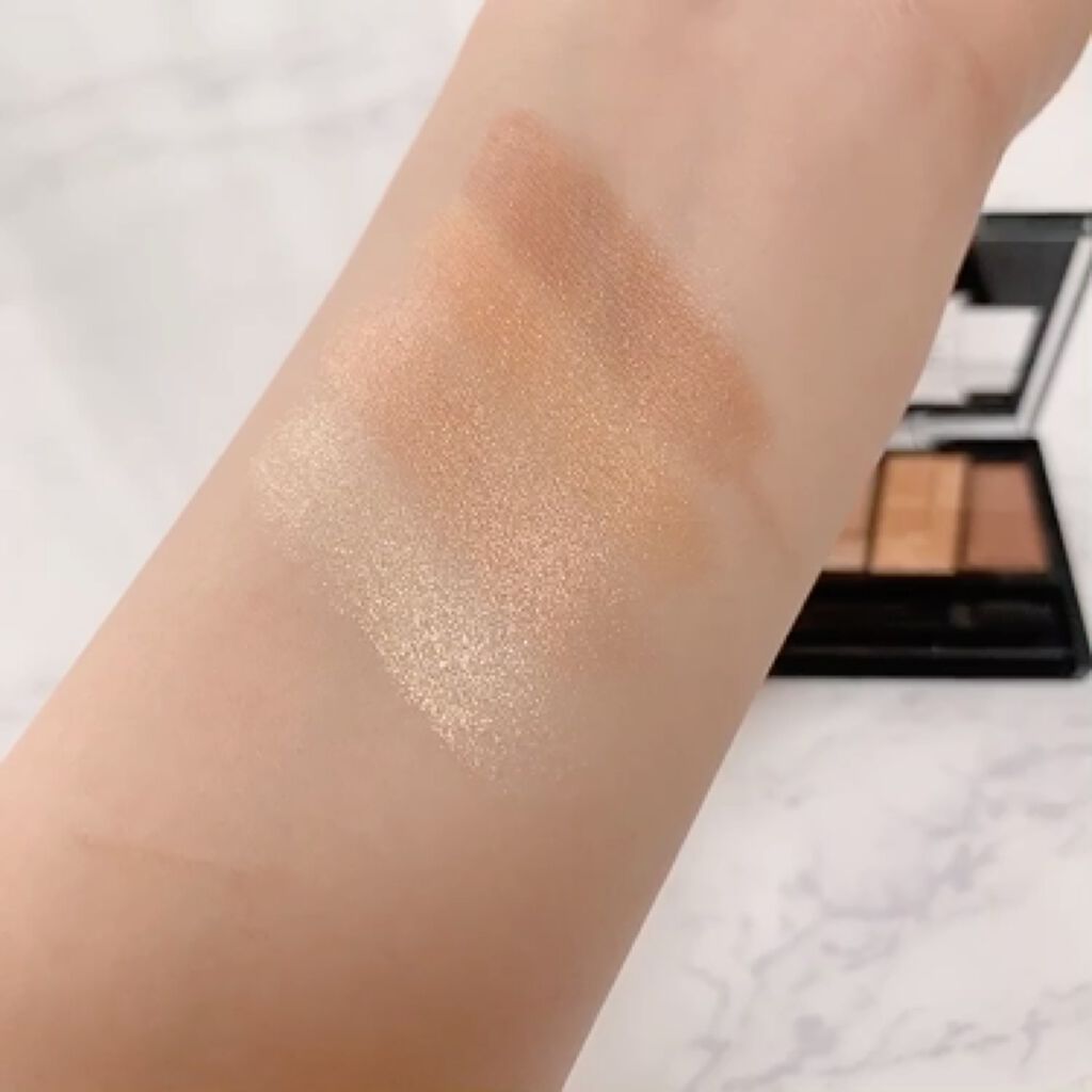 mude.の方がよりあたたかみのある印象で全体的に使いやすい色味が入っている感じ◎ ラメ感もギラギラするよりかは上品なキラキラ感✨ rom&ndはmude.に比べるとフレッシュな印象!春や夏に使うと映えそう❣️ ラメ感も強く、目立つかな。 似てるかもしれないからと買うのを長い間悩んでいましたが、仕上がりが全然変わってくるので、買って良かった😂❤️ 粉質はブランドも違うので違ったよ✨ rom&ndの方がしっとり感があって強く発色する感じ。 mude.は淡い発色で、初心者さんも使いやすいと思った🫶🏻