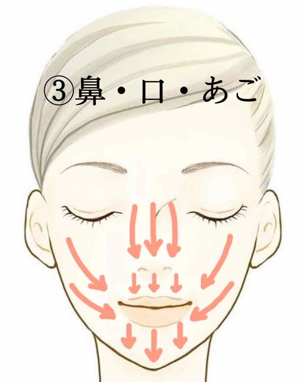 蒸しタオルで肌を温める 肌や産毛を柔らかくすることで、カミソリの刃が引っかかりにくくなり肌を傷付けるリスクを軽減することが出来ます。 正しい方向に向かって剃る 写真の矢印の方向に向かって産毛を剃っていきます。 見逃しがちなゾーン ④唇のキワ 見えにくい透明の産毛が潜んでいることが多いです。