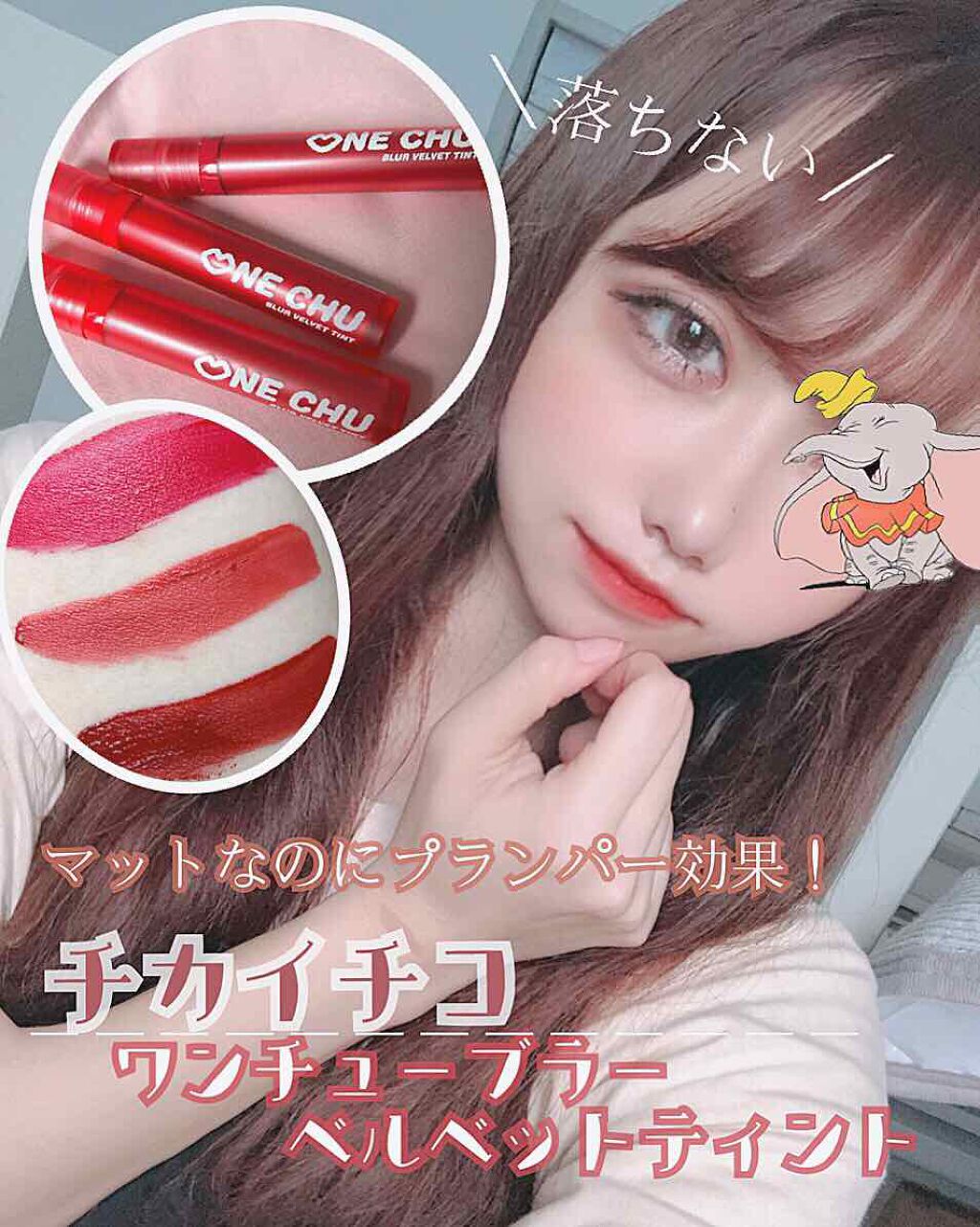 チカイチコワンチューブラーベルベットティント02BERRYRED04DEEPRED10CHERRYRED唇部分は全く加工してないのに美肌加工してるみたいに見えません?縦じわをぼかしてくれて唇が綺麗に見えるティント。発色がすこぶる良くて色持ちも...