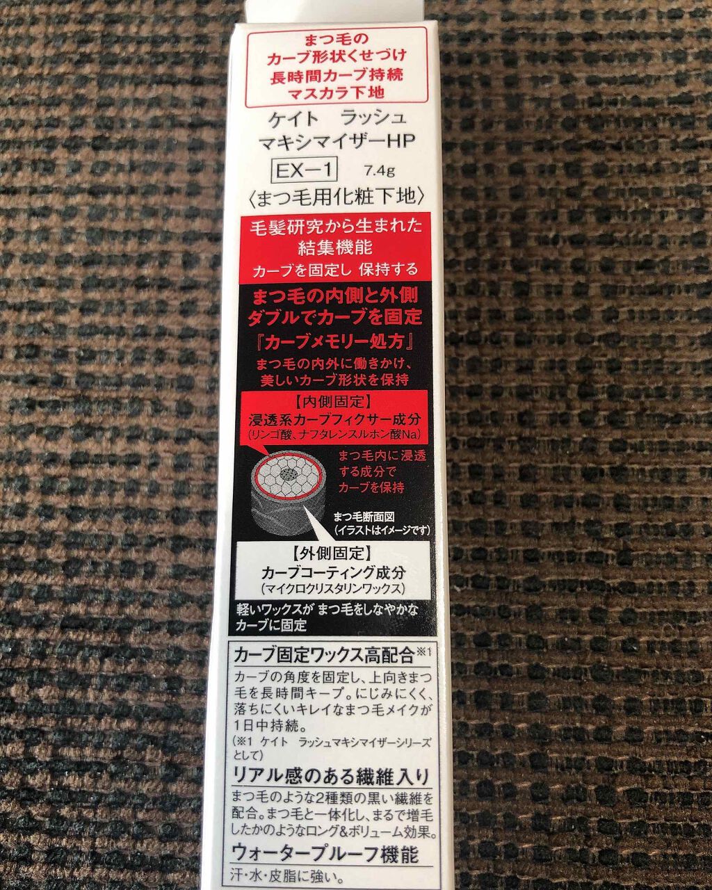 - リニューアル発売 長時間、カーブ持続するまつ毛用下地。 カーブの角度を固定し、上向きまつ毛を長時間キープするカーブ固定ワックス高配合(ケイトラッシュマキシマイザーシリーズとして)。 にじみにくく、落ちにくいきれいなまつ毛メイクが1日中持続。 リアル感のある2種類の黒い繊維入りで、ロング・ボリューム効果まで。 まつ毛の内側と外側からダブルでカーブを固定するカーブメモリー処方採用。 汗・水・皮脂に強いウォータープルーフタイプ。