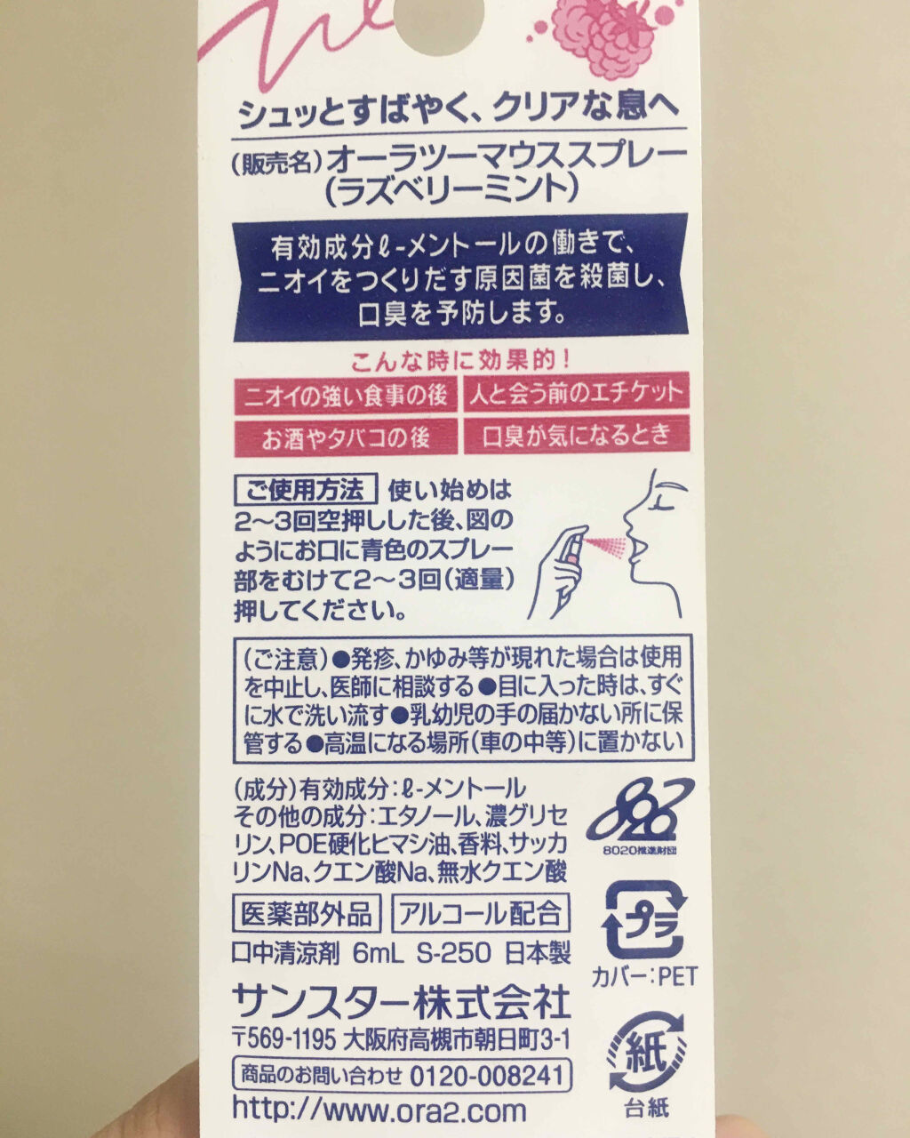 食事後やデート前、気になる時にサッと使えるマウススプレー。フレーバーも豊富でお値段も手に取りやすい価格です^^ これを持ち運ぶことで心配な時はシュッとひと吹きで安心できるようになりました。このように私は精神的な効果を強く感じているのですが、もちろん実際の口臭にも効いている、と思います笑 手軽に口臭対策がしたい方にはおすすめです!