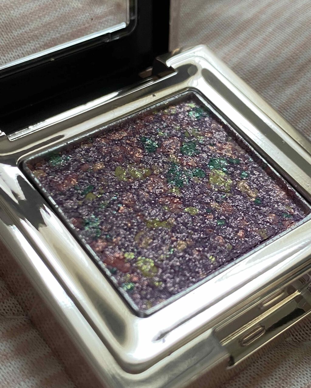 - 宝石パウダー・偏光パールにより、光の当たり方で色合いが変わるグリッターアイシャドウ。ババス油、ザクロ種子油、ホホバ種子油配合で、粉飛びしにくくまぶたにしっかり密着します。