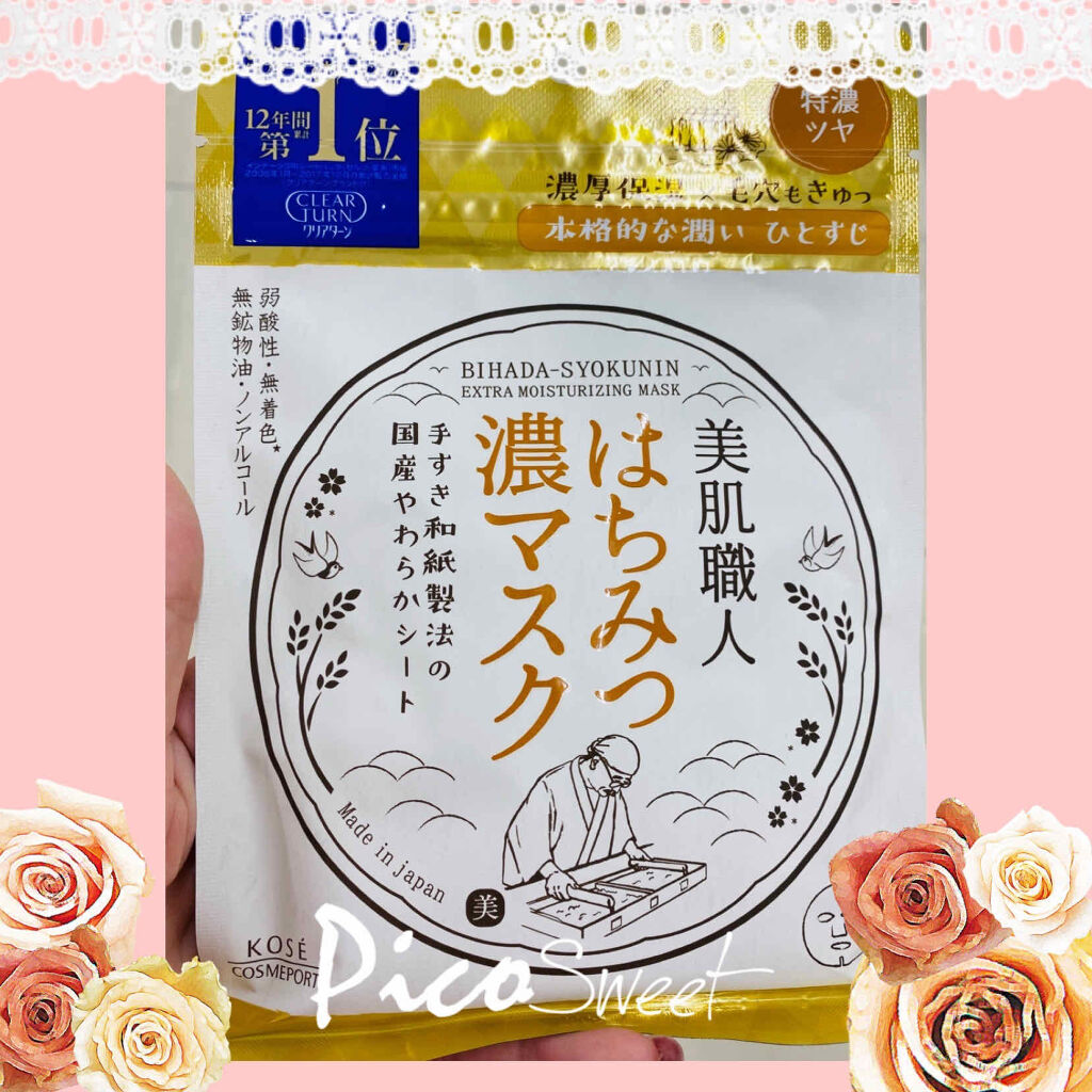 ごめんね素肌や、毛穴小町で有名なコーセークリアターンのマスク。 シートがはほんのり、はちみつみたいな黄色で、布のようなしっかりした素材でした。 思っていたより、時間が経っても潤いが続いていたのでちゃんと保湿を感じることができました。