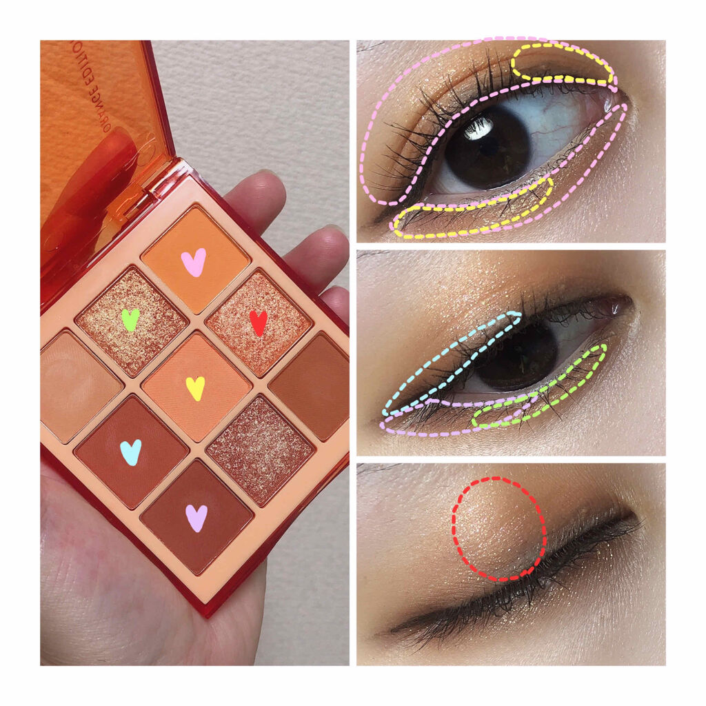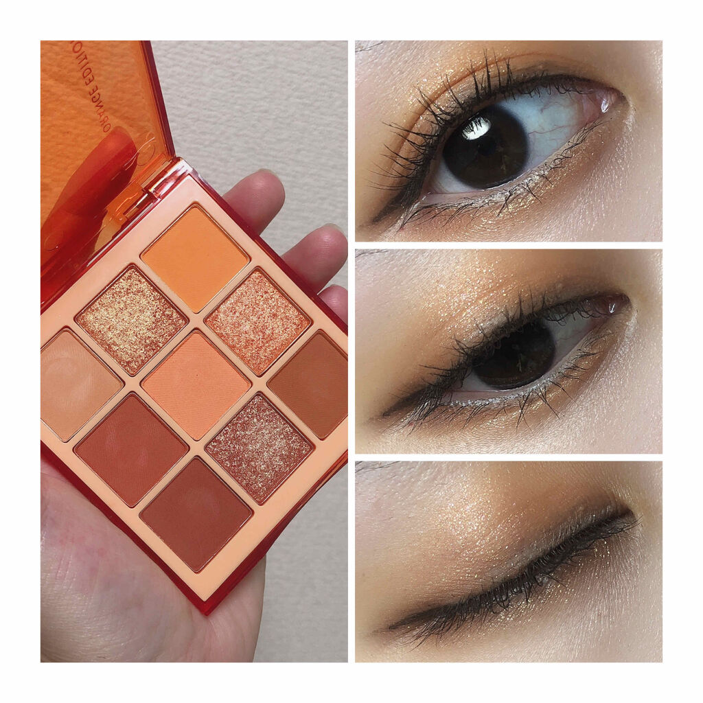 - オレンジカラーたっぷり!爽やかでハツラツとしたオレンジムードの果汁カラーが、清涼感あふれる目元を演出してくれるオレンジパレットです。
