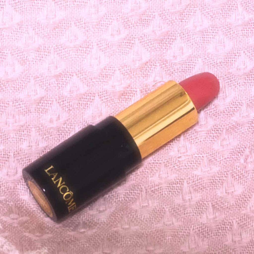 独特な口紅っぽい、化粧品!って香りがします🤔 塗りここちはスルスル、ちょっとこっくり、発色はかなりいいです👌 薄塗りでも可愛いけど、重ね付けするとかなり発色よくかっちり感が出ます◎ 少し青みのピンクですが浮くことはなくわりと馴染んでくれました🌸 黒いパケにゴールドロゴとランコムの柄が上品で、ミニサイズなので持ち歩きにGood🤭💓