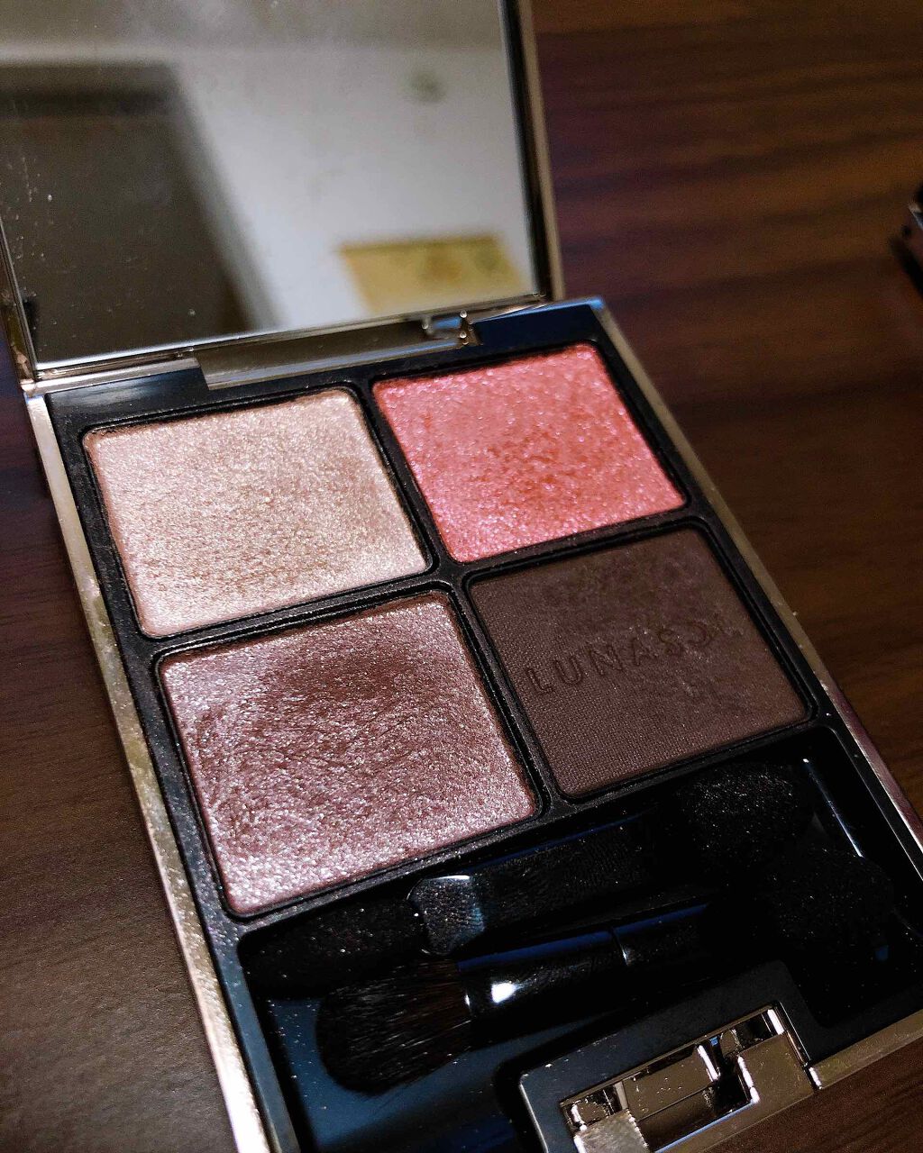 記録用LUNASOLアイカラーレーション EX03ミステリアスムード2019ホリデーコレクションお母さんに使わせたら右下濃くつけすぎてビジュアル系みたいになったw...