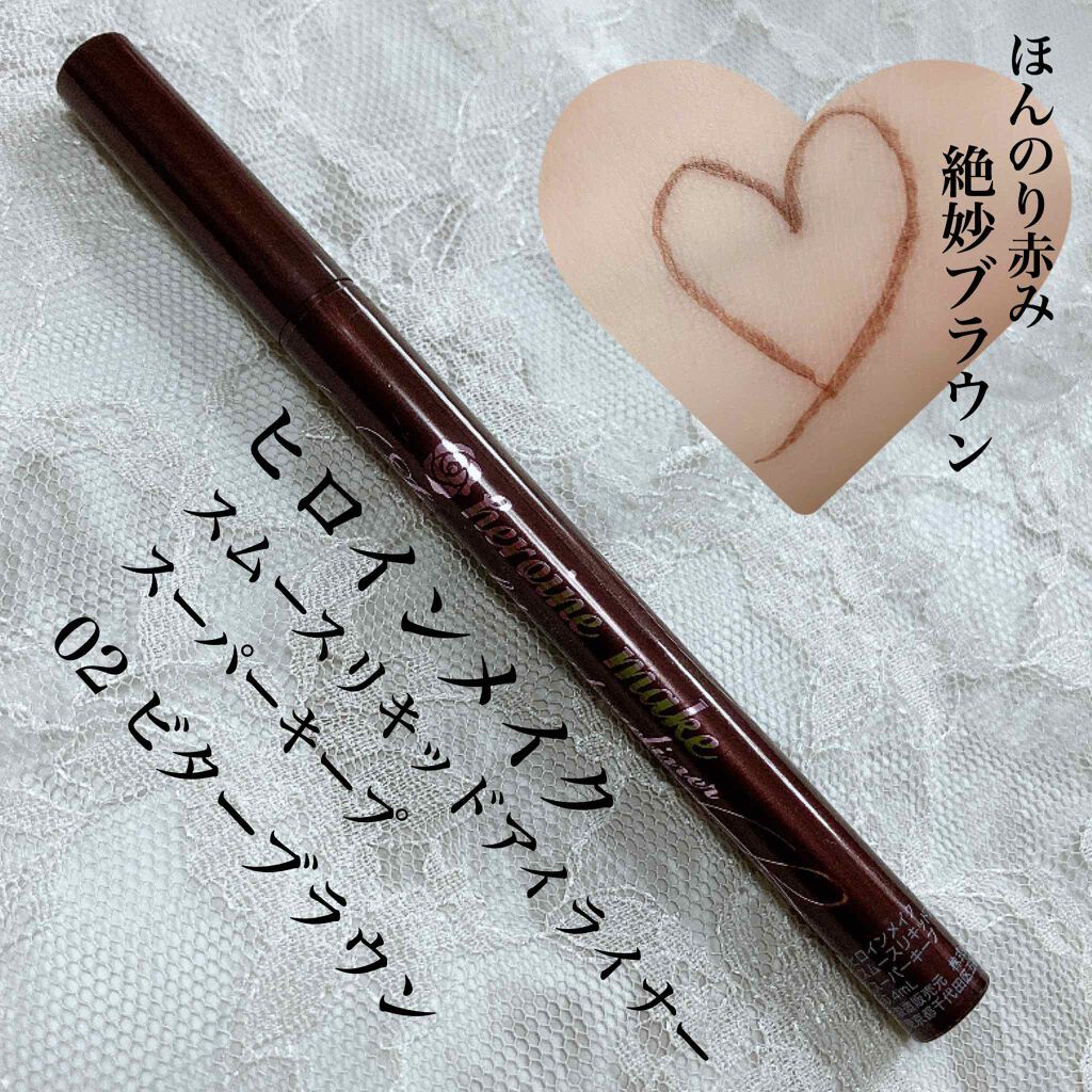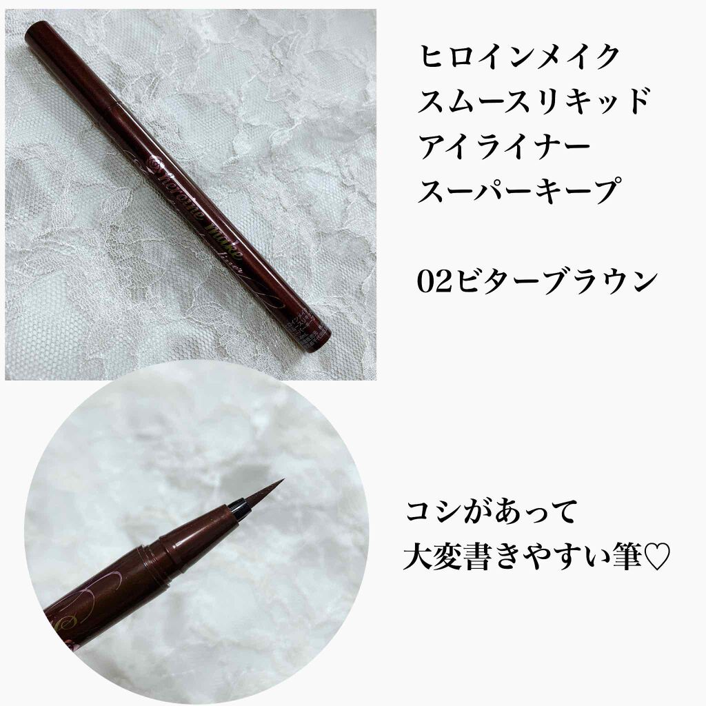ヒロインメイクスムースリキッドアイライナースーパーキープ🤍02ビターブラウンにじみに強くてお湯落ち!!アイライナーにおいて落ちにくさって重要だったので、密着力の高さがとても嬉しい😍筆先はこしがあって描きやすい!綺麗に簡単に描けます!!02のカ...