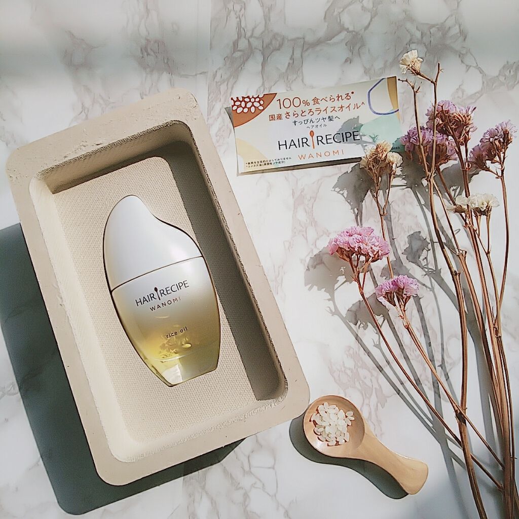 - 国産のピュアな米ぬかオイル*1 が、パサつく髪の内側まで浸透、補修するお米のヘアオイル。 芯からしっとり、なのにべたつかない。 ●古来より伝わる米ぬか美容 古来より、お米には優れた美容効果があることが知られており、肌や髪のうるおいを保つために使われてきました。 「和の実 by ヘアレシピ」はそんなお米のちからに着目。お米由来のヘアケアで、うるおいに満ちた、天使の つや髪へ導きます。 ●1000 粒からたった 1 滴しか採れない貴重な米ぬかオイル*1 米ぬかと米胚芽から抽出される米ぬかオイル*1 は、お米 1000 粒からたった 1 滴しか採れない貴重なオイルです。 独自に開発された精製方法により、日本国内で丁寧に抽出された米ぬかオイル*1 には髪に必要な成分が ぎゅっと濃縮されており、その 1 滴 1 滴が、髪本来の美しさを引き出します。 ●高い浸透力で髪の内側と外側からダブルでアプローチ 日本人の髪はキューティクルが厚くて硬いため、有用成分が浸透しにくいと言われています。そんな日本人の 髪にぴったりなのが米ぬかオイル*1 です。浸透力が非常に高い米ぬかオイル*1は、厚くて硬いと言われる日本人 の髪のキューティクルにも、内側までしっかり浸透します。さらに、外的ストレスからも髪を守って、内と外の両方から アプローチすることで、自然に輝くような、美しい髪を叶えます。 *1 コメヌカ油(浸透性ツヤ成分) ※2022年リニューアル発売