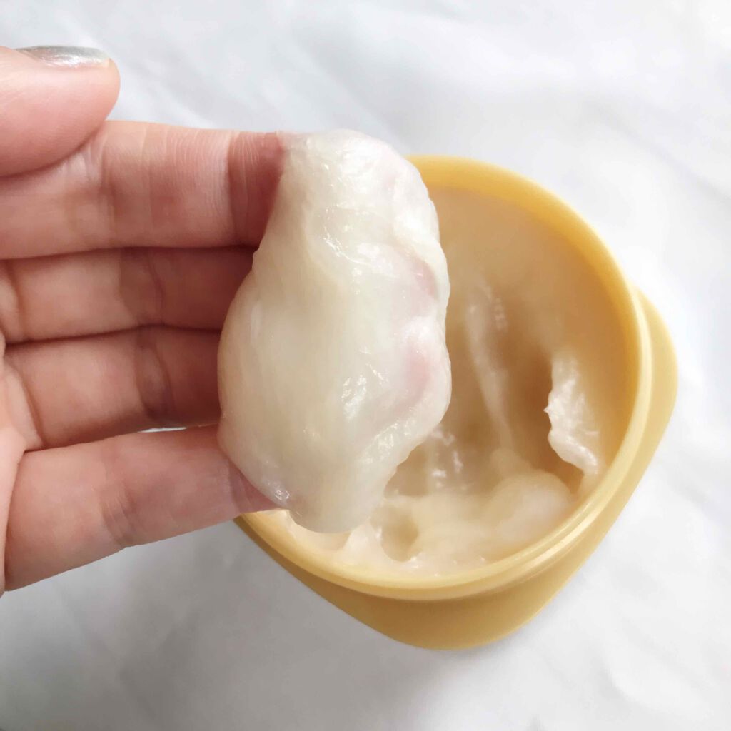 贅沢に美容成分を配合しているクリームは思ったより軽く、みずみずしく、素肌によくのびます。べとつきはしないかな。 プッシュしてエアレスボトルから新鮮なクリームが出てくるから量も調節しやすい🙆♀️ クリームはジェルのようにみずみずしいよ。少し高級化粧品によくあるような独特の香りがします。 ピンク色のエアーレスのボトル プッシュするとクリームが出てきます。