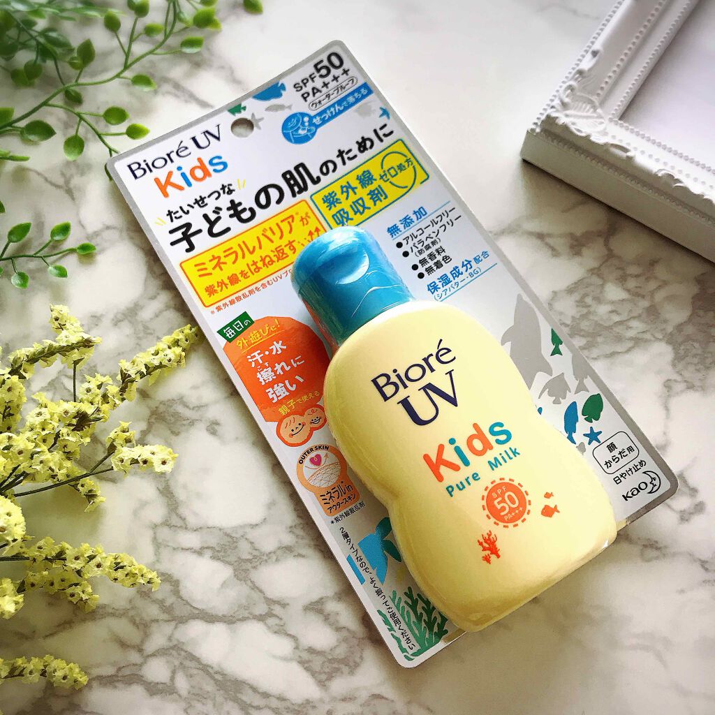 BioréUVキッズピュアミルク『たいせつな子どもの肌のために』・ミネラルバリアが紫外線をはね返す・紫外線吸収剤ゼロ処方・汗、水、こすれに強い・無添加→アルコールフリー、パラベン(防腐剤)フリー、無香料、無着色 ・保湿成分配合・アレルギーテス...