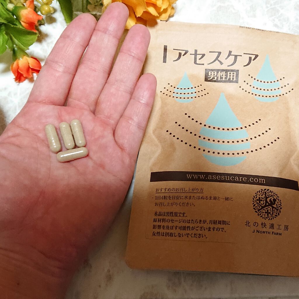 - 『アセスケア』は、何をしても止まらない“だらだら・ベタベタ”に悩む男性に向けて開発したサプリメントです。身体の自律的な働きが乱れ、バランスが崩れることで起こるお悩みを、GABA、ミルクペプチド、L-テアニン、糖転移ヘスペリジン、セージ等の成分により、自律的な働きのバランスをサポートし、“だらだら・ベタベタ”の悩みが襲ってこない状態へと導きます。さらに、だらだらとしたたる悩みの量が多いことに加えて、ニオイの原因となる皮脂の量も多いため、ニオイの悩みも強くなっています。男性特有の性質に合わせ、デオキャッチャー、柿渋、クマザサなどを配合し、エチケット対策にもしっかり対応しています。