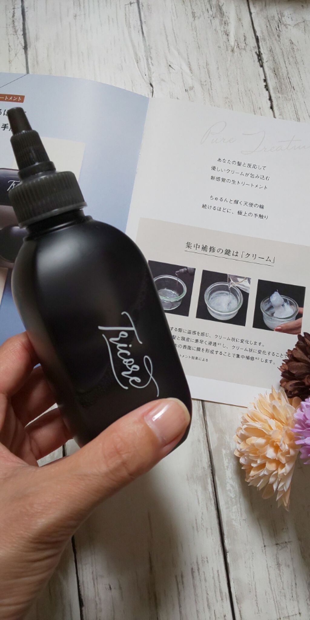 片手で握りやすく、ボトルの先がノズルになっているので、頭皮にもつけやすいです。 わずかにじんわりと温かさを感じます。 ジャスミンとローズマリーの爽やかさにちょっぴり甘さもあって、リラックスできるような香りです。 液体からクリームに変化して、髪1本1本をコーティングしてくれるみたいなとぅるんとした手触りで、ドライヤーで乾かした後も髪がなめらか。