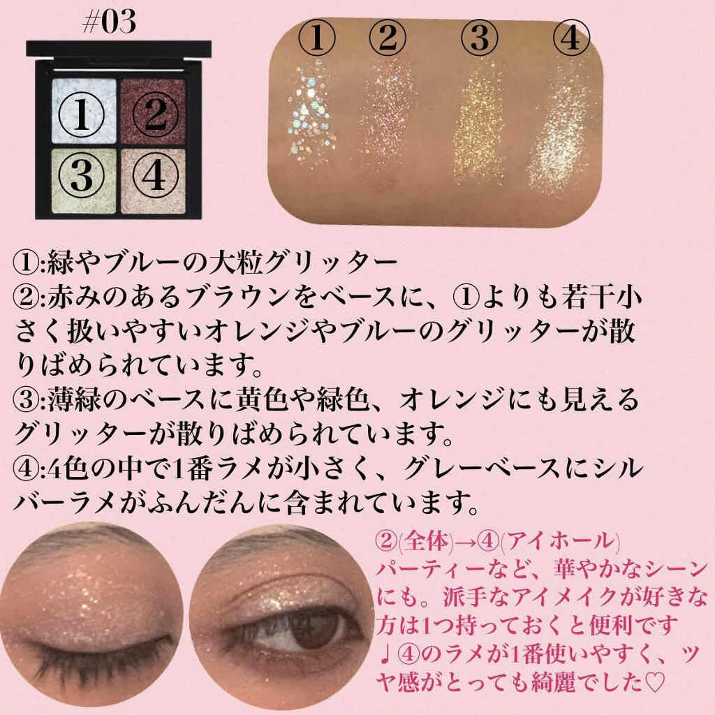 | アイシャドウパレットランキング第4位 | 粉質もしっとり高密着でラメがキラキラ大粒めで可愛い♡ | 詳細を見る | |