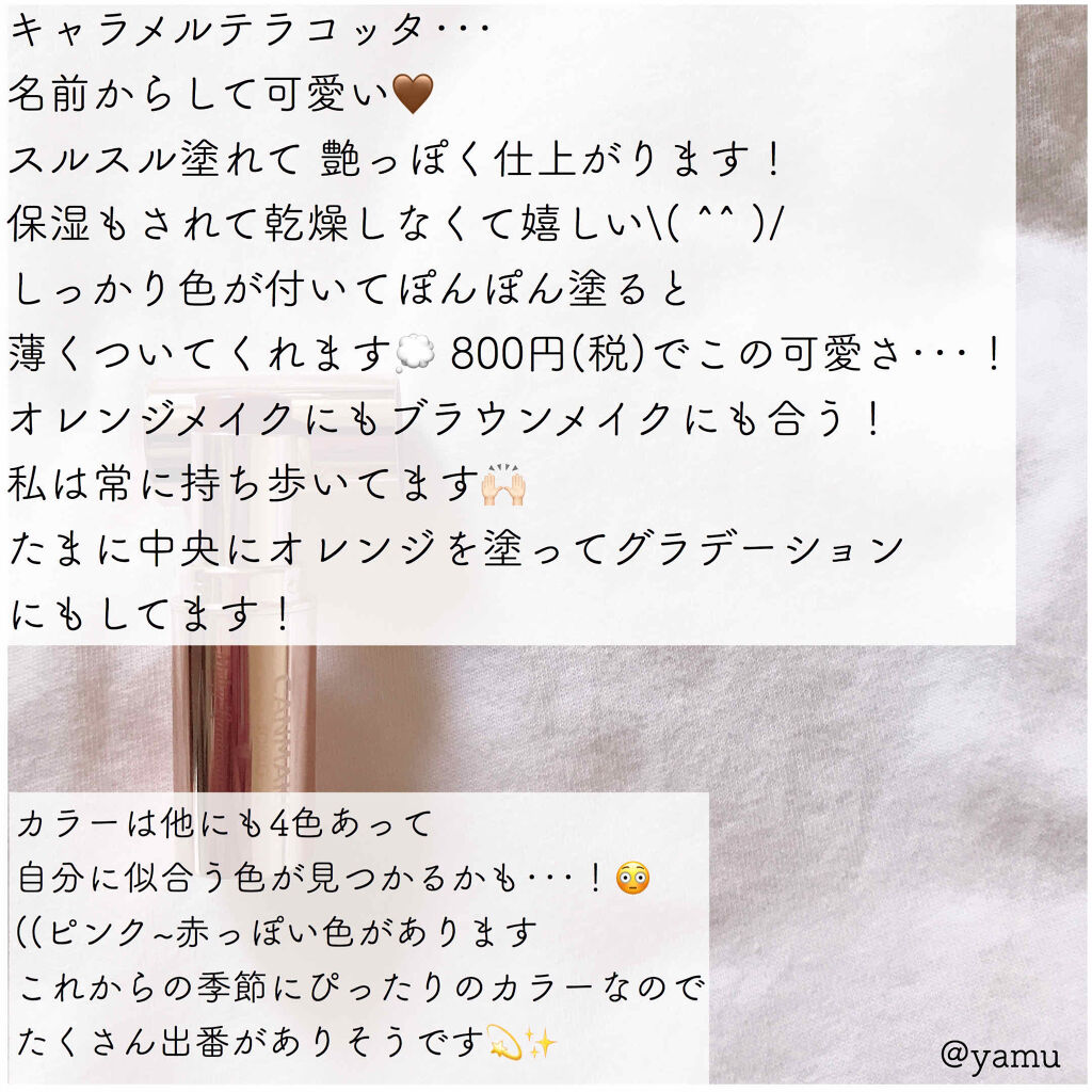 スルスルっととろけるように塗れます😌✨ 発色も色持ちもよくてコスパもいいのでお気に入りでしたがついに全色廃盤…😭 こちらはプチプラではあまり見かけないオシャレなテラコッタカラーです🙌🏻 落ち着いたカラーで一気にオシャレ顔になれます💃